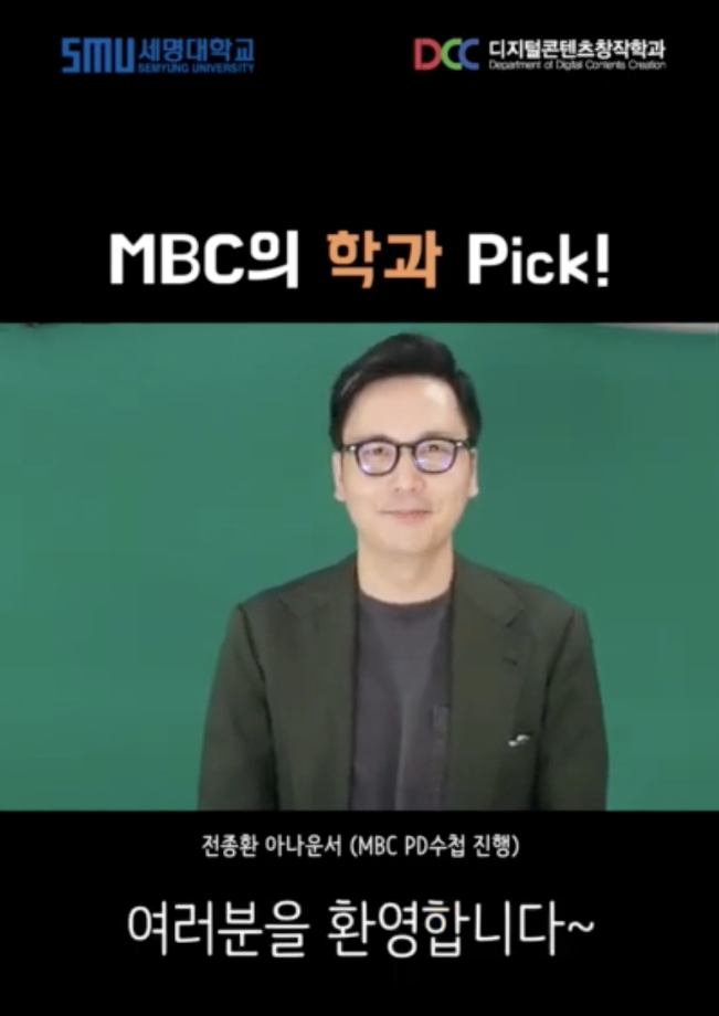 배우 정한용님과 MBC의 대학 학과픽은 어디일까요? 바로 세명대학교 디지털콘텐츠창작학과입니다!
