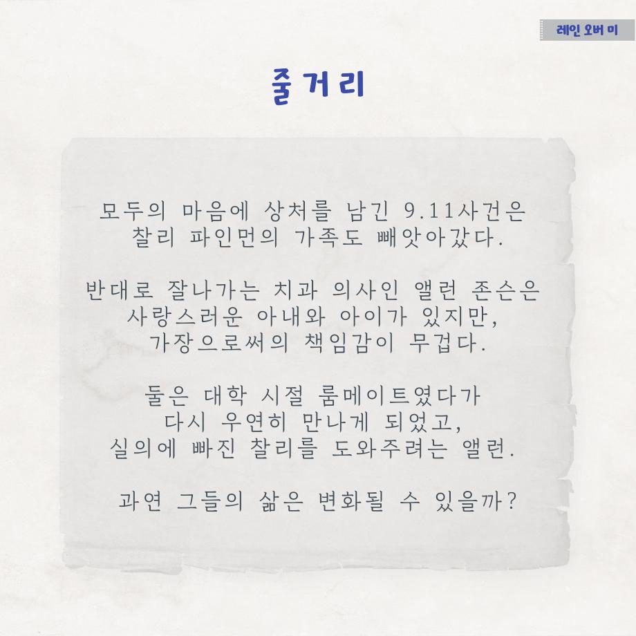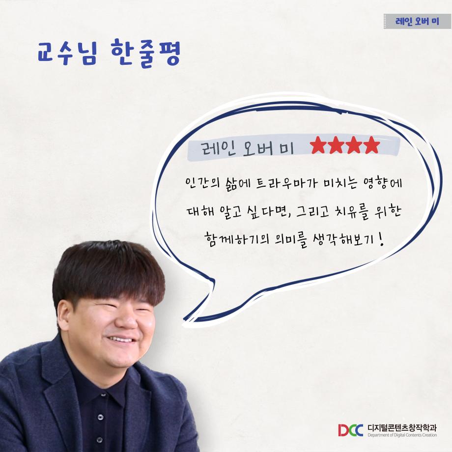본문 시작 홈으로 MCC News 학과소개 교수소개 학과과정 MCC News MCC SNS 홈페이지가이드 학과 및 재학생 학과 및 재학생 교수 및 졸업생 미디어 정보통 학과 및 재학생 페이스북 트위터 프린트 디콘창이 추천하는 영화 추천 6선 1탄 디지털콘텐츠창작학과 4231 2022-12-08 세명대학교 디지털콘텐츠창작학과가 추천하는 영화 추천 6선 시리즈가 시작됩니다! 1탄의 추천 영화는 ‘레인 오버 미’입니다 😃 영화 추천 시리즈에서는 추천 영화의 줄거리, 스틸컷, 감상 가능한 사이트, 교수님의 한줄평까지 한눈에 볼 수 있습니다. 짧지만 알찬 정보는 담았으니, 다양한 장르의 추천 영화를 감상해 보시고 여러분들의 한줄평을 남겨주세요! 앞으로 올라올 5편도 학우분들의 많은 관심 부탁드립니다❤ 목록 이전부산중구스토리공모전-디지털콘텐츠창작학과 학생 5명 수상 다음 제20회 DCC콘텐츠페스티벌 사진첩 1탄! 담당부서 : 미디어콘텐츠창작학과 담당자 : - 연락처 : 043-649-1741 최종수정일 : 2024-10-26 만족도조사 만족도 조사 이 페이지에서 제공하는 정보에 대하여 만족하시나요? 매우만족 만족 보통 불만족 매우불만족