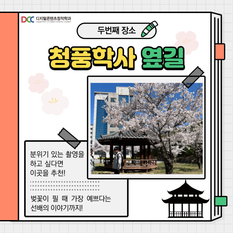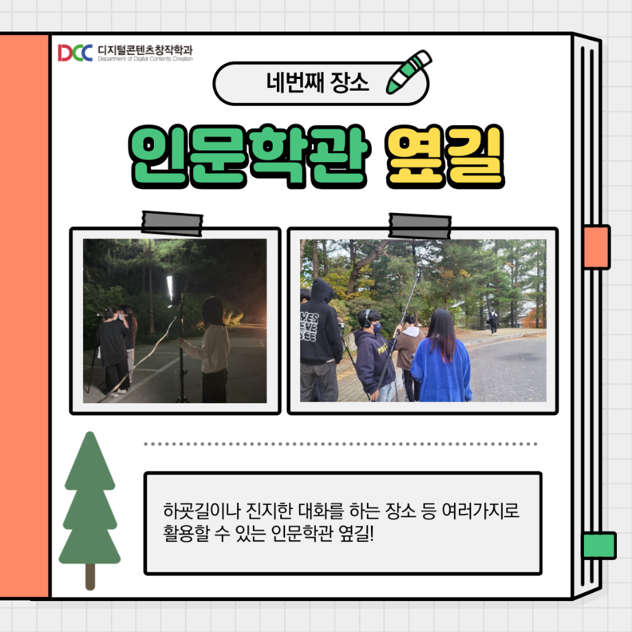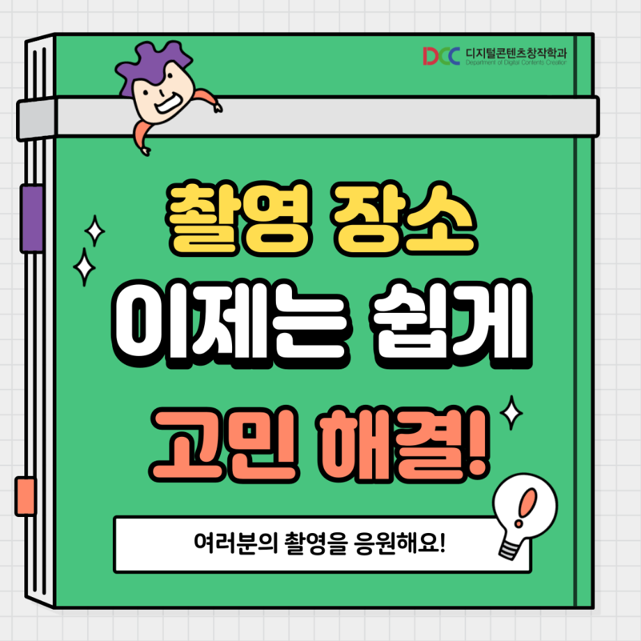 본문 시작 홈으로 MCC News 학과소개 교수소개 학과과정 MCC News MCC SNS 홈페이지가이드 학과 및 재학생 학과 및 재학생 교수 및 졸업생 미디어 정보통 학과 및 재학생 페이스북 트위터 프린트 교내 촬영 장소 추천! 디지털콘텐츠창작학과 4574 2023-08-18 촬영을 해야 하는데 장소가 고민인 디콘창 학생들을 위해 준비했습니다! 학교 안에서의 촬영 장소를 추천해 드려요! 개강이 얼마 남지 않은 만큼 참고하시면 좋을 것 같습니다! 목록 이전🍭 오늘의 디콘 20탄 🍭 다음 📚디콘창 세부전공 소개📚 담당부서 : 미디어콘텐츠창작학과 담당자 : - 연락처 : 043-649-1741 최종수정일 : 2024-10-26 만족도조사 만족도 조사 이 페이지에서 제공하는 정보에 대하여 만족하시나요? 매우만족 만족 보통 불만족 매우불만족
