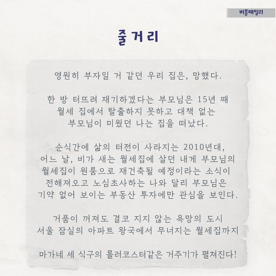 본문 시작 홈으로 MCC News 학과소개 교수소개 학과과정 MCC News MCC SNS 홈페이지가이드 학과 및 재학생 학과 및 재학생 교수 및 졸업생 미디어 정보통 학과 및 재학생 페이스북 트위터 프린트 디콘창이 추천하는 영화 추천 6선 6탄 디지털콘텐츠창작학과 5687 2023-08-30 세명대학교 디지털콘텐츠창작학과가 추천하는 영화 추천 6선 시리즈 마지막 여섯번째입니다! 마지막 6탄의 추천 영화는 '버블패밀리'입니다. 영화 추천 시리즈에는 추천 영화의 줄거리, 스틸컷, 감상 가능한 사이트, 교수님의 한 줄 평까지 볼 수 있습니다. 짧지만 알찬 정보는 담았으니, 다양한 장르의 추천 영화를 감상해 보시고 여러분들의 한 줄 평을 남겨주세요! 목록 이전📷디콘창 “촬영”장비 소개📷 다음 📝디콘창 학생회 8월 월말결산 담당부서 : 미디어콘텐츠창작학과 담당자 : - 연락처 : 043-649-1741 최종수정일 : 2024-10-26 만족도조사 만족도 조사 이 페이지에서 제공하는 정보에 대하여 만족하시나요? 매우만족 만족 보통 불만족 매우불만족