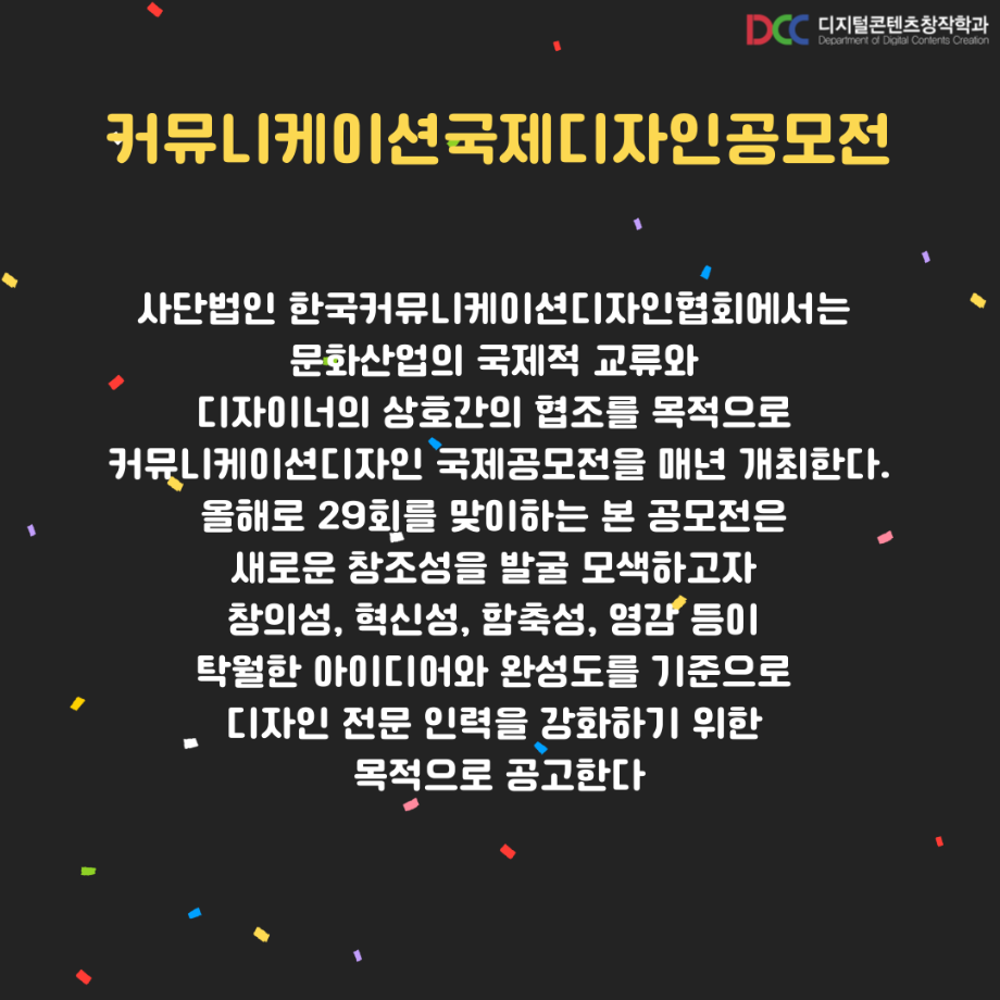 본문 시작 홈으로 MCC News 학과소개 교수소개 학과과정 MCC News MCC SNS 홈페이지가이드 학과 및 재학생 학과 및 재학생 교수 및 졸업생 미디어 정보통 학과 및 재학생 페이스북 트위터 프린트 디지털콘텐츠창작학과 재학생 커뮤니케이션 국제 디자인 공모전 수상 디지털콘텐츠창작학과 8289 2023-09-13 디지털콘텐츠창작학과 학우분들의 공모전 수상을 축하드립니다! 앞으로도 여러분들의 멋진 도전을 응원합니다! 목록 이전디지털콘텐츠창작학과, 장학금 마련을 위한 양심책방 운영 다음 디지털콘텐츠창작학과 재학생 국제 디자인트렌드 대전 수상 담당부서 : 미디어콘텐츠창작학과 담당자 : - 연락처 : 043-649-1741 최종수정일 : 2024-10-26 만족도조사 만족도 조사 이 페이지에서 제공하는 정보에 대하여 만족하시나요? 매우만족 만족 보통 불만족 매우불만족