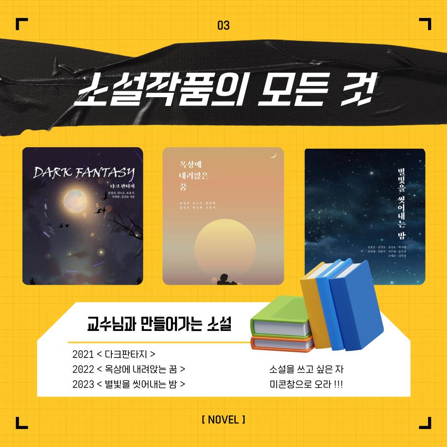 미디어콘텐츠창작학과 소설 전공 수업에서 교수님과 학생들이 함께 창작하는 소설집들입니다!
