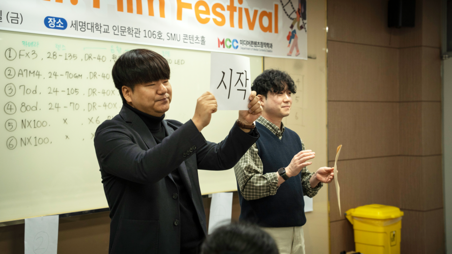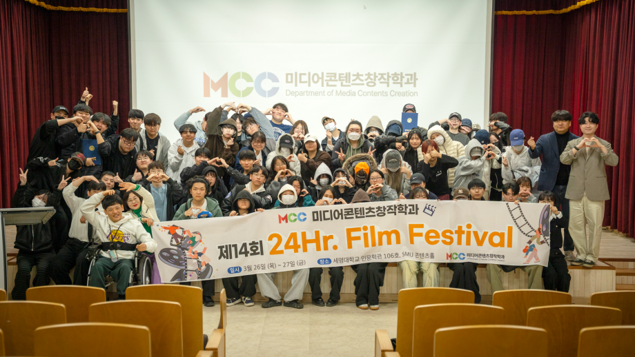 본문 시작 홈으로 MCC News 학과소개 교수소개 학과과정 MCC News MCC SNS 홈페이지가이드 학과 및 재학생 학과 및 재학생 교수 및 졸업생 미디어 정보통 학과 및 재학생 페이스북 트위터 프린트 제14회 24시간 필름 페스티벌 미디어콘텐츠창작학과 62 2026-04-01 미디어콘텐츠창작학과의 행사인 24시간 필름 페스티벌이 3월 26일부터 27일까지 24시간 동안 진행되었습니다. 학과 대표 행사인 24시간 필름 페스티벌은 24시간 동안 주어진 주제에 맞게 각본, 촬영, 편집을 통해 작품을 만드는 행사입니다. 올해는 총 6개의 팀으로 나누어져 ’시작‘을 주제로 영상을 제작했습니다. 학생 여러분 모두 24시간 동안 쉬지 않고 작품 제작 하시느라 고생 많으셨습니다! 목록 이전2026학년도 미디어콘텐츠창작학과 개강총회 담당부서 : 미디어콘텐츠창작학과 담당자 : - 연락처 : 043-649-1741 최종수정일 : 2024-10-26 만족도조사 만족도 조사 이 페이지에서 제공하는 정보에 대하여 만족하시나요? 매우만족 만족 보통 불만족 매우불만족
