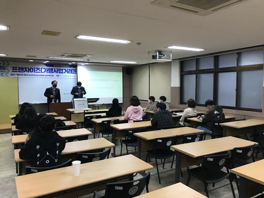 본문 시작 홈으로 커뮤니티 학과안내 교수소개 학과과정 커뮤니티 홈페이지가이드 학과사진첩 공지사항 취업정보 학과사진첩 학과행사 동아리 학생회 교우소식 학과사진첩 페이스북 트위터 프린트 2021. 11. 18 염규석 박사님 특강 법학과 3105 2021-11-18 2021년 11월 18일 한국편의점산업협회 상근부회장직을 맡고 계시는 염규석 박사님을 모시고 ' 프랜차이즈(가맹사업거래)의 본질과 전망' 이라는 주제로 특강을 진행하였습니다. ※본 특강은 코로나19 방역 수칙을 준수하여 진행하였습니다.※ 목록 이전2021. 11. 18 이준길 박사님 특강 다음 2021. 11. 24 엄덕수 법무사님 특강 담당부서 : 법학과 담당자 : - 연락처 : 043-649-1764 최종수정일 : 2024-10-26 만족도조사 만족도 조사 이 페이지에서 제공하는 정보에 대하여 만족하시나요? 매우만족 만족 보통 불만족 매우불만족