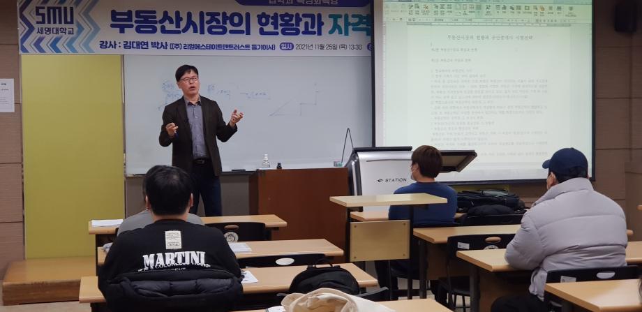 본문 시작 홈으로 커뮤니티 학과안내 교수소개 학과과정 커뮤니티 홈페이지가이드 학과사진첩 공지사항 취업정보 학과사진첩 학과행사 동아리 학생회 교우소식 학과사진첩 페이스북 트위터 프린트 2021. 11. 24 김대연 박사님 특강 법학과 2892 2021-11-25 2021년 11월 24일 (주)리얼이스테이트앤트러스트에서 등기이사을 맡고 계시는 김대연 박사님을 모시고 ' 부동산시장의 현황과 자격증 합격 전략' 이라는 주제로 특강을 진행하였습니다. ※본 특강은 코로나19 방역 수칙을 준수하여 진행하였습니다.※ 목록 이전2021. 11. 24 엄덕수 법무사님 특강 다음 2021 11. 25. 노철우 공인중개사님 특강 담당부서 : 법학과 담당자 : - 연락처 : 043-649-1764 최종수정일 : 2024-10-26 만족도조사 만족도 조사 이 페이지에서 제공하는 정보에 대하여 만족하시나요? 매우만족 만족 보통 불만족 매우불만족