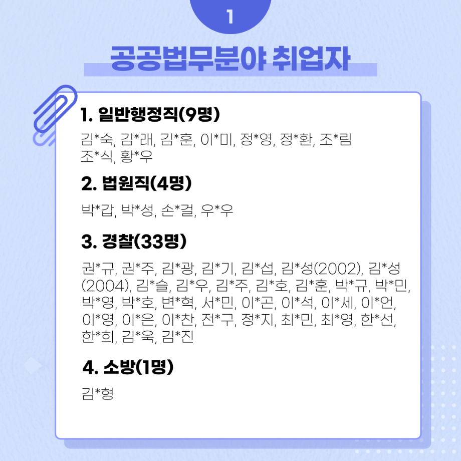 본문 시작 홈으로 커뮤니티 학과안내 교수소개 학과과정 커뮤니티 홈페이지가이드 학과사진첩 공지사항 취업정보 학과사진첩 학과행사 동아리 학생회 교우소식 학과사진첩 페이스북 트위터 프린트 법학과 선배들의 진로 현황 법학과 15254 2023-08-03 법학과 선배들의 진로 현황입니다. 목록 이전재학생 모교방문 입시홍보(세명고등학교) 다음 재학 중 공무원 합격을 축하합니다! 담당부서 : 법학과 담당자 : - 연락처 : 043-649-1764 최종수정일 : 2024-10-26 만족도조사 만족도 조사 이 페이지에서 제공하는 정보에 대하여 만족하시나요? 매우만족 만족 보통 불만족 매우불만족