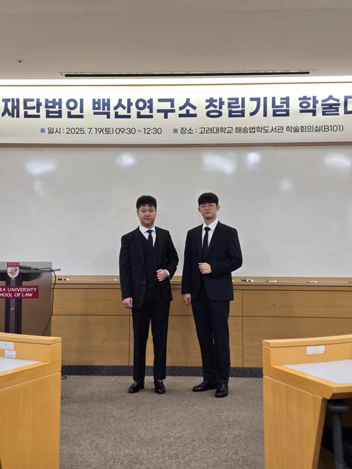 본문 시작 홈으로 커뮤니티 학과안내 교수소개 학과과정 커뮤니티 홈페이지가이드 학과사진첩 공지사항 취업정보 학과사진첩 학과행사 동아리 학생회 교우소식 학과사진첩 페이스북 트위터 프린트 [2025 입시홍보활동] 고려대학교 재단법인 백산연구소 창립기념 학술대회 참가 법학과 1872 2025-07-21 7.19 이진효 교수님께서 대학원 진학을 목표로 하고 있는 재학생(장건희, 한다훈)들과 고려대학교 대학원 방문 재단법인 백산연구소 창립기념 학술대회 참가하셨습니다. 목록 이전[2025 입시홍보활동] 세명고등학교 입시 홍보 방문 다음 법학과 전공체험 7. 23 담당부서 : 법학과 담당자 : - 연락처 : 043-649-1764 최종수정일 : 2024-10-26 만족도조사 만족도 조사 이 페이지에서 제공하는 정보에 대하여 만족하시나요? 매우만족 만족 보통 불만족 매우불만족