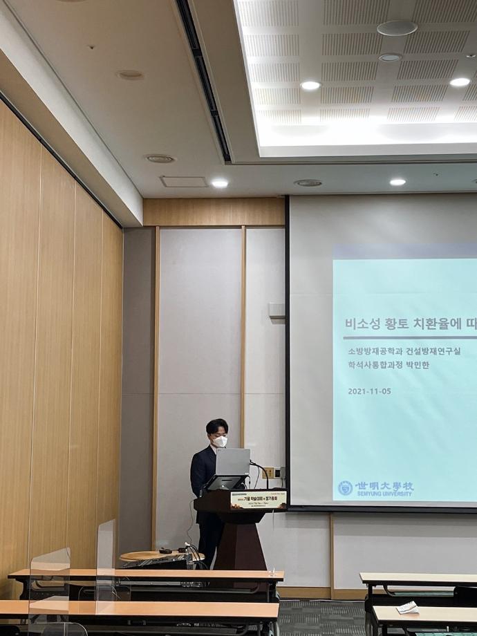 소방방재학과 학석사 통합과정 박민한은 「비소성 황토 치환 콘크리트의 수화열 발현 특성 고찰」이라는 논문을 통해 탄소중립 정책에 기여하기 위한 콘크리트 특성에 대한 연구를 진행했다.