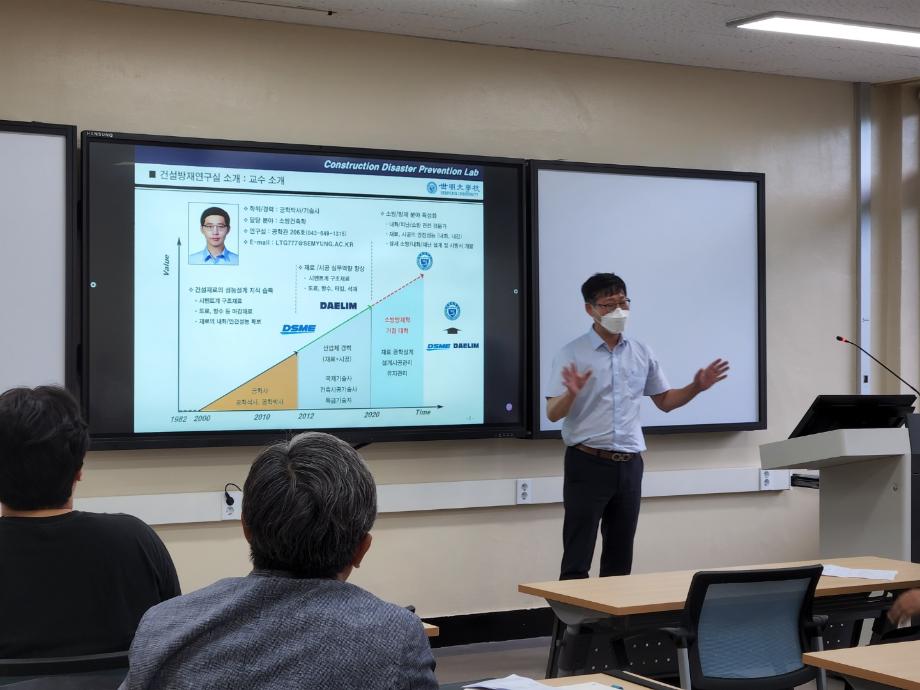 강원대학교 도계 캠퍼스에서 권인규 소방방재학부 학부장님의 인사말 후 건축소방 실험실, 소방전기 실험실, CFD 소방방재 실험실을 소개 받았습니다. 이후 강원대학교 삼척캠퍼스에서 연합 학술세미나를 진행하였습니다.
