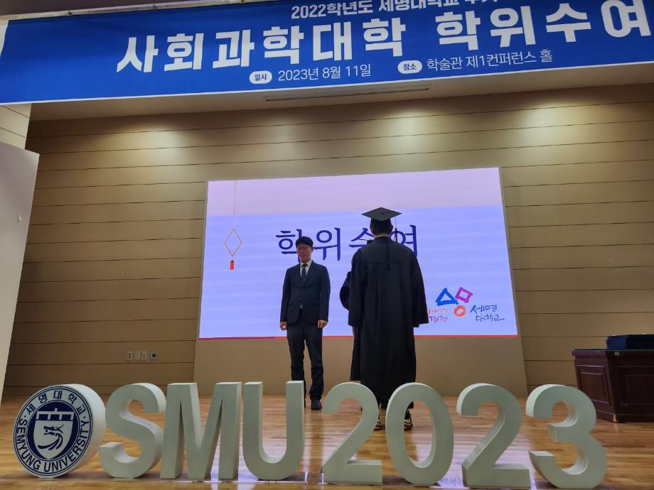 본문 시작 홈으로 커뮤니티 학과소개 교수소개 전공과정 커뮤니티 홈페이지가이드 학과행사 학과공지 채용정보 학사일정 학과행사 동아리 소방방재학과의 자랑 궁금합니다 수험생 Q&A 학과행사 페이스북 트위터 프린트 2022학년도 학위 수여식 소방방재학과 9312 2023-08-11 2022학년도 후기 세명대학교 사회과학대학 학위수여식 2023년 8월 11일 세명대학교 학술관 제1컨퍼런스 홀에서 진행되었습니다. 사회과학대학 교수님들과 학부모님들께서 참여하셨습니다. 소방방재학과는 이번 학위 수여식에서 최*원, 권*준 학생이 학위를 수여받았습니다. 졸업을 진심으로 축하드리며 졸업생분들의 앞날을 응원합니다. 목록 이전2023년 (주)코너스 특강 및 기술 설명회 다음 제 7회 사회과학토론대회 장려상 수상 담당부서 : 소방방재학과 담당자 : - 연락처 : 043-649-1787 최종수정일 : 2024-10-26 만족도조사 만족도 조사 이 페이지에서 제공하는 정보에 대하여 만족하시나요? 매우만족 만족 보통 불만족 매우불만족