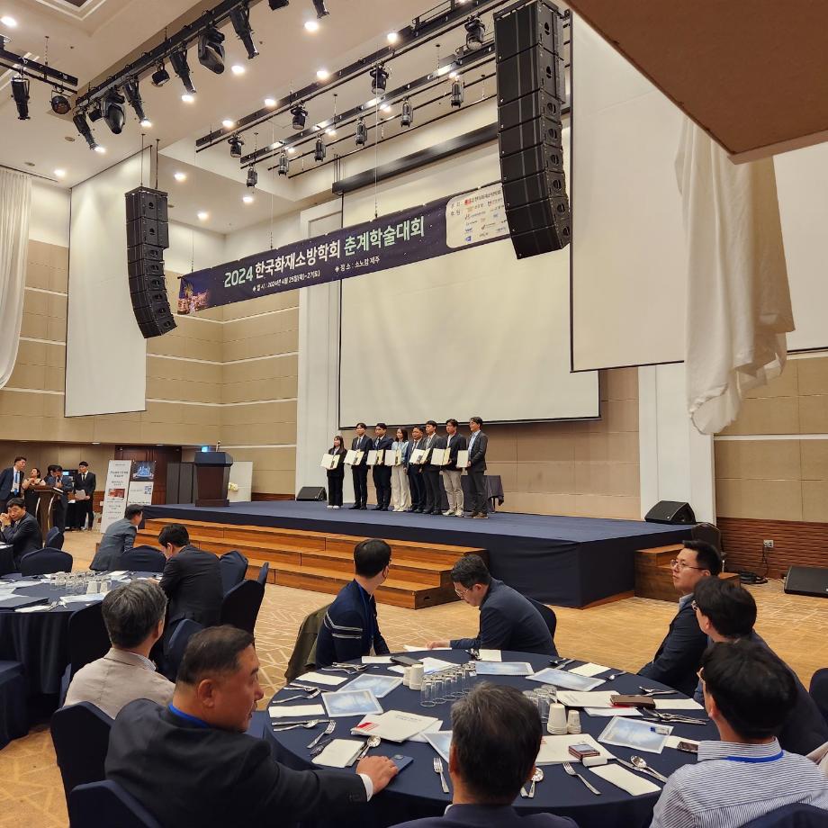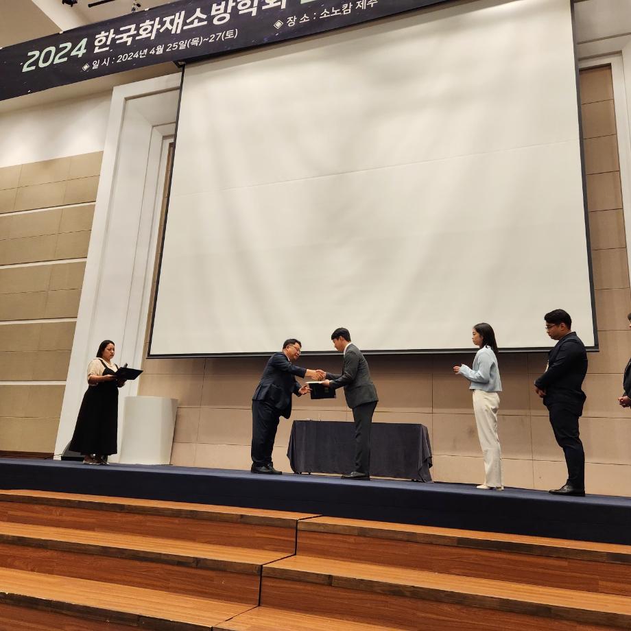 2024년 한국화재소방학회에서 이태규 교수님의 『비소성 황토 혼입률에 따른 콘크리트의 고온 역학적 특성 평가를 위한 초음파법 검토』 논문이 학회에서 우수한 논문으로 인정받으며, 공을 기여하였기에 학술상을 수여받았습니다.