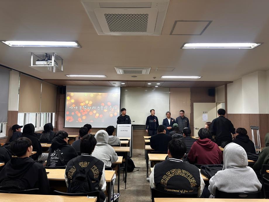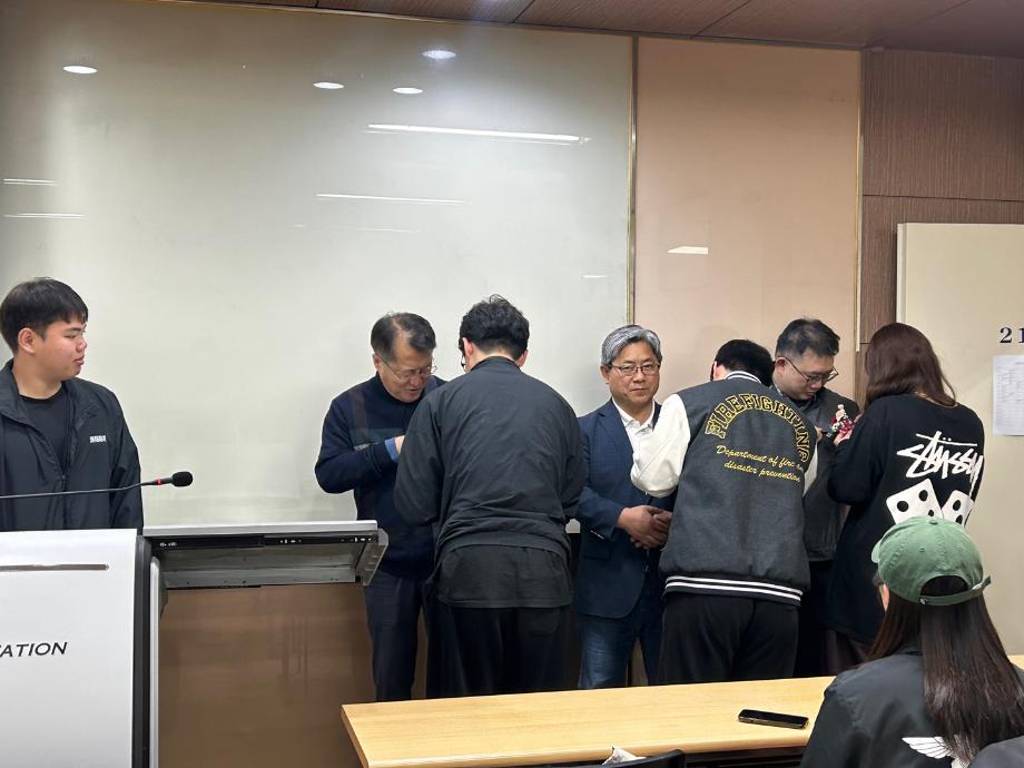 본문 시작 홈으로 커뮤니티 학과소개 교수소개 전공과정 커뮤니티 홈페이지가이드 학과행사 학과공지 채용정보 학사일정 학과행사 동아리 소방방재학과의 자랑 궁금합니다 수험생 Q&A 학과행사 페이스북 트위터 프린트 2025년 스승의 날 행사 소방방재학과 1831 2025-05-15 학생회에서 스승의날 행사를 준비해 공학관 211호에서 교수님들께 감사인사를 전하는 시간을 가졌습니다! 윤용균 교수님, 정기신 교수님, 정해영 교수님, 이태규 교수님 항상 감사드립니다 :) 목록 다음 2025년 1학기 소방방재학과 MT Membership Training 다음 2025년 세명대학교 학과대항전 담당부서 : 소방방재학과 담당자 : - 연락처 : 043-649-1787 최종수정일 : 2024-10-26 만족도조사 만족도 조사 이 페이지에서 제공하는 정보에 대하여 만족하시나요? 매우만족 만족 보통 불만족 매우불만족