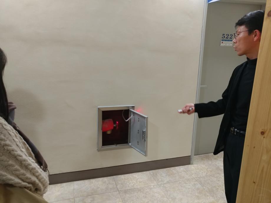 본문 시작 홈으로 커뮤니티 학과소개 교수소개 전공과정 커뮤니티 홈페이지가이드 학과행사 학과공지 채용정보 학사일정 학과행사 동아리 소방방재학과의 자랑 궁금합니다 수험생 Q&A 학과행사 페이스북 트위터 프린트 18-2학기 소방현장실무체험 소방방재학과 8173 2018-11-15 이번년도부터 개설된 교과목인 소방현장실무체험 과목에 대하여 김규현 강사님이 해당 과목을 수강중인 4학년 학생을 대상으로 교내의 학술관 건물의 전반적인 소방설비시스템을 실물을 통해 설명하였습니다. 목록 이전2018학년도 소방방재학과 M.T 다음 18-2 소방현장실무체험 담당부서 : 소방방재학과 담당자 : - 연락처 : 043-649-1787 최종수정일 : 2024-10-26 만족도조사 만족도 조사 이 페이지에서 제공하는 정보에 대하여 만족하시나요? 매우만족 만족 보통 불만족 매우불만족
