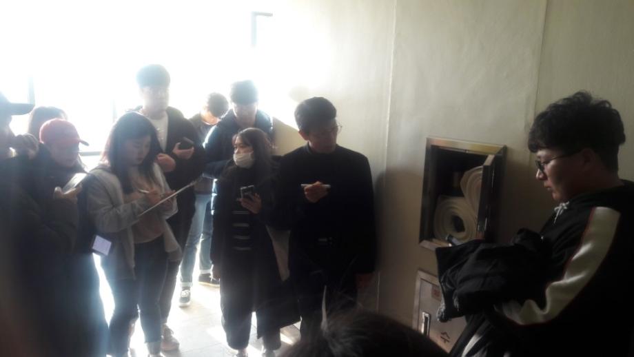 본문 시작 홈으로 커뮤니티 학과소개 교수소개 전공과정 커뮤니티 홈페이지가이드 학과행사 학과공지 채용정보 학사일정 학과행사 동아리 소방방재학과의 자랑 궁금합니다 수험생 Q&A 학과행사 페이스북 트위터 프린트 18-2 소방현장실무체험 소방방재학과 8275 2018-11-15 이번년도부터 개설된 교과목인 소방현장실무체험 과목에 대하여 김규현 강사님이 해당 과목을 수강중인 4학년 학생을 대상으로 교내의 학술관 건물의 전반적인 소방설비시스템을 실물을 통해 설명하였습니다. 목록 이전18-2학기 소방현장실무체험 다음 18-2학기 CPR 교육 담당부서 : 소방방재학과 담당자 : - 연락처 : 043-649-1787 최종수정일 : 2024-10-26 만족도조사 만족도 조사 이 페이지에서 제공하는 정보에 대하여 만족하시나요? 매우만족 만족 보통 불만족 매우불만족