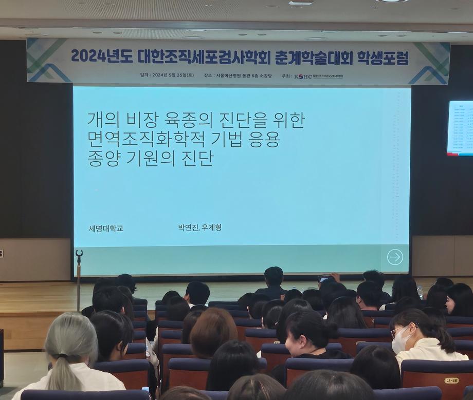 본문 시작 대한조직세포검사학회 임상병리학과 2331 2024-06-01 우계형, 우현준교수님과 히스토랩학생들이 지난 5월 25일 대한조직세포검사학회 춘계학술대회 학생포럼에 참가하였습니다. 발표준비에 매진한 연구원 학생들과 열심히 피드백을 해주신 교수님의 열정을 통해 두 팀 모두 우수상을 수상하였습니다. 수고하셨습니다. 좋은 결과 너무 축하드립니다. 목록 이전스승의 날 다음 S-Boot Camp 담당부서 : 임상병리학과 담당자 : - 연락처 : 043-649-1537 최종수정일 : 2024-10-26 만족도조사 만족도 조사 이 페이지에서 제공하는 정보에 대하여 만족하시나요? 매우만족 만족 보통 불만족 매우불만족