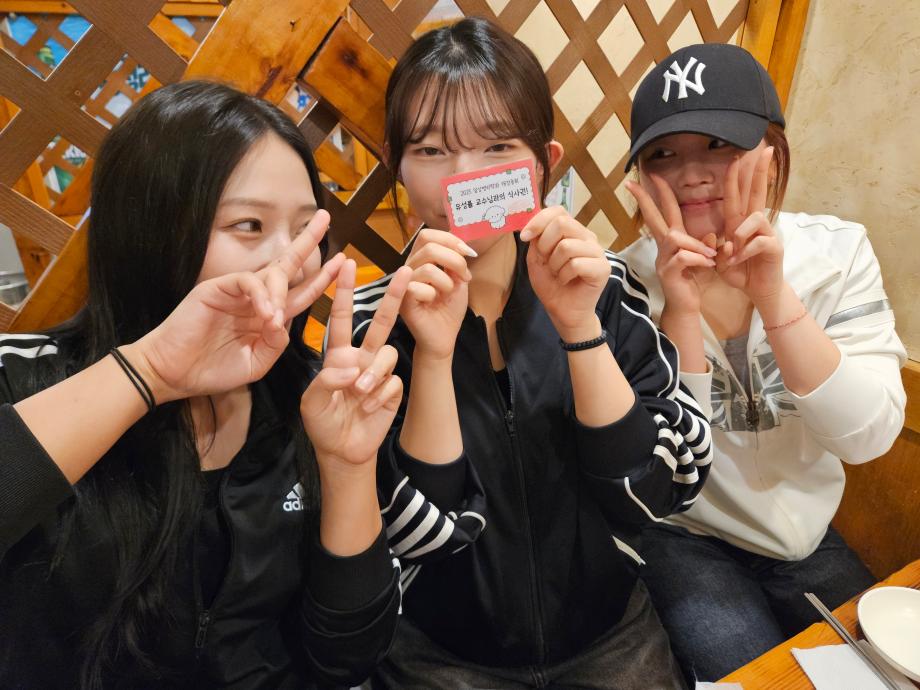 본문 시작 교수님과의 즐거운 식사 자리 임상병리학과 1433 2025-10-01 개강총회 상품이었던 교수님과의 식사권 사용 인증샷입니다. 목록 이전2025년도 2학기 개강총회 이전청룡체전 피구부문 우승 담당부서 : 임상병리학과 담당자 : - 연락처 : 043-649-1537 최종수정일 : 2024-10-26 만족도조사 만족도 조사 이 페이지에서 제공하는 정보에 대하여 만족하시나요? 매우만족 만족 보통 불만족 매우불만족