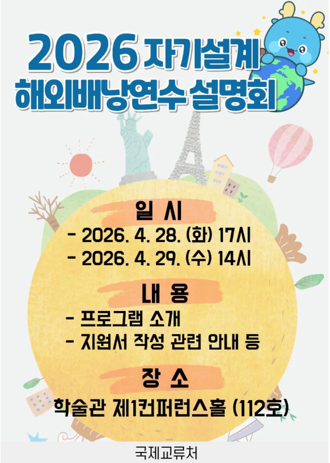 본문 시작 홈으로 학부자료실 학부소개 교육과정 학부공지게시판 학부자료실 홈페이지가이드 학부행사 및 사진게시판 학부행사 및 사진게시판 학생회 소개 학부행사 및 사진게시판 페이스북 트위터 프린트 2026 자기설계 해외배낭연수 설명회 시행 안내 바이오제약산업학부 20 2026-04-27 2026 자기설게 해외배낭연수와 관련하여 설명회를 진행하고자 하오니 재학생 여러분의 많은 관심과 참여를 부탁드립니다. 목록 이전축하합니다. 이*서 학생이 시마즈사이언티픽코리아에 취업하였습니다. 다음 2026 세명진로페스티벌 안내 담당부서 : 바이오제약산업학부 담당자 : - 연락처 : 043-649-1729 최종수정일 : 2024-10-26 만족도조사 만족도 조사 이 페이지에서 제공하는 정보에 대하여 만족하시나요? 매우만족 만족 보통 불만족 매우불만족