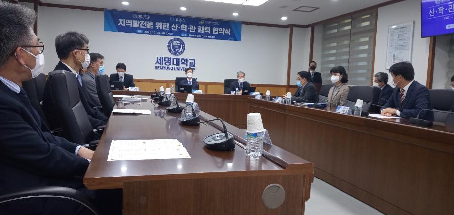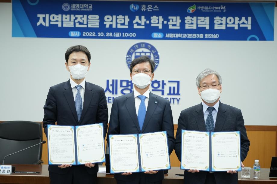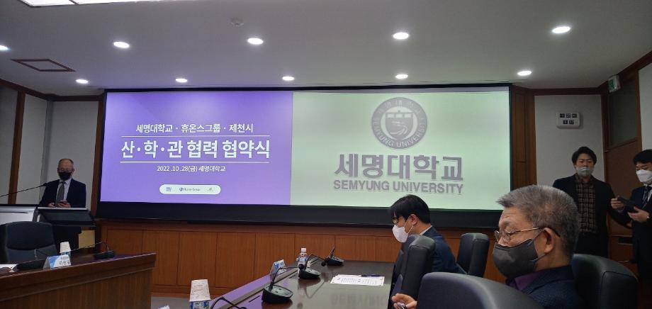 본문 시작 홈으로 학부자료실 학부소개 교육과정 학부공지게시판 학부자료실 홈페이지가이드 학부행사 및 사진게시판 학부행사 및 사진게시판 학생회 소개 학부행사 및 사진게시판 페이스북 트위터 프린트 세명대학교:휴온스 상생협력을 위한 산학관협약 체결 바이오제약산업학부 3549 2022-11-04 세명대학교(총장 권동현)와 휴온스그룹(회상 윤성태), 제천시는 28일 세명대학교 본관 대회의실에서 상생협력을 위한 산학관 협약을 체결했다. 이 자리에 직접 관련 전공인 바이오제약산업학부, 화장품뷰티학부 교수들도 함께하였다. 목록 이전한국식품영양과학회에서 포스터 발표 다음 오송첨단의료산업진흥재단 등 견학 담당부서 : 바이오제약산업학부 담당자 : - 연락처 : 043-649-1729 최종수정일 : 2024-10-26 만족도조사 만족도 조사 이 페이지에서 제공하는 정보에 대하여 만족하시나요? 매우만족 만족 보통 불만족 매우불만족
