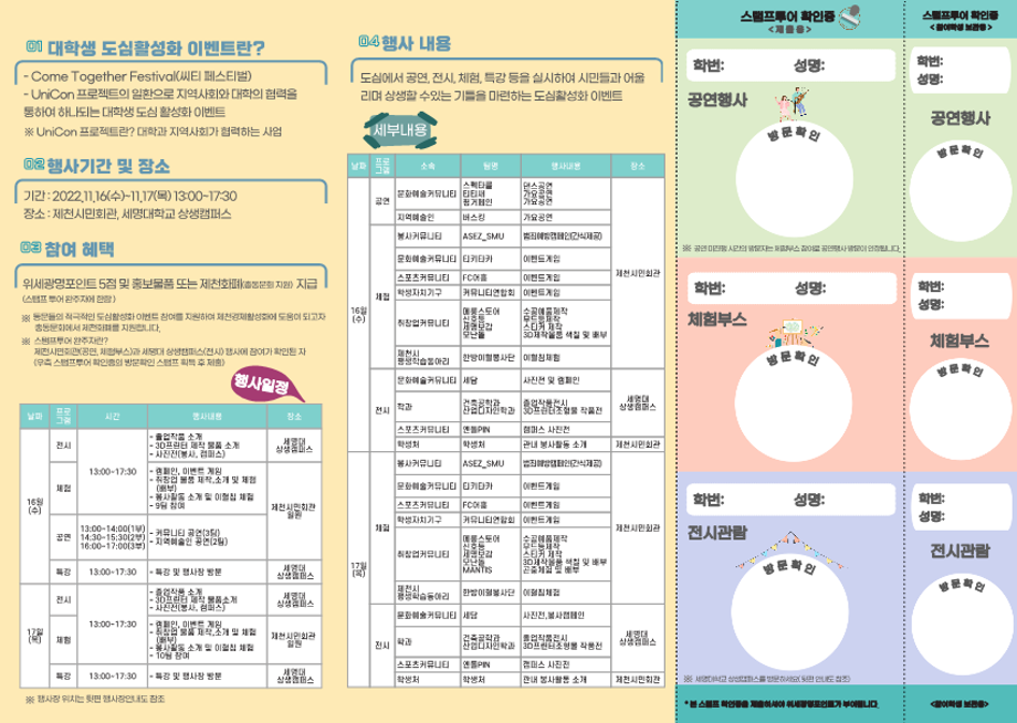 본문 시작 홈으로 학부자료실 학부소개 교육과정 학부공지게시판 학부자료실 홈페이지가이드 학부행사 및 사진게시판 학부행사 및 사진게시판 학생회 소개 학부행사 및 사진게시판 페이스북 트위터 프린트 대학생 도심활성화 이벤트 바이오제약산업학부 3348 2022-11-14 대학생 도심활성화 이벤트 목록 이전[무료] 이력서용 사진촬영 다음 세명대, 내년부터 체육 1과목 이수해야 졸업 담당부서 : 바이오제약산업학부 담당자 : - 연락처 : 043-649-1729 최종수정일 : 2024-10-26 만족도조사 만족도 조사 이 페이지에서 제공하는 정보에 대하여 만족하시나요? 매우만족 만족 보통 불만족 매우불만족