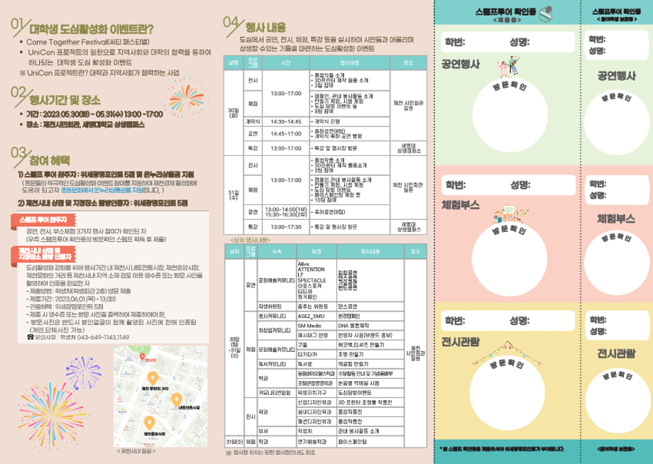 본문 시작 홈으로 학부자료실 학부소개 교육과정 학부공지게시판 학부자료실 홈페이지가이드 학부행사 및 사진게시판 학부행사 및 사진게시판 학생회 소개 학부행사 및 사진게시판 페이스북 트위터 프린트 2023 대학생 도심 활성화 이벤트 바이오제약산업학부 3280 2023-05-30 2023 대학생 도심 활성화 이벤트 목록 이전토익 스파르타 300+ 신청 안내 다음 세명대학교 2023학년도 하계 표준(자율)현장실습학기제 학생 안내 담당부서 : 바이오제약산업학부 담당자 : - 연락처 : 043-649-1729 최종수정일 : 2024-10-26 만족도조사 만족도 조사 이 페이지에서 제공하는 정보에 대하여 만족하시나요? 매우만족 만족 보통 불만족 매우불만족