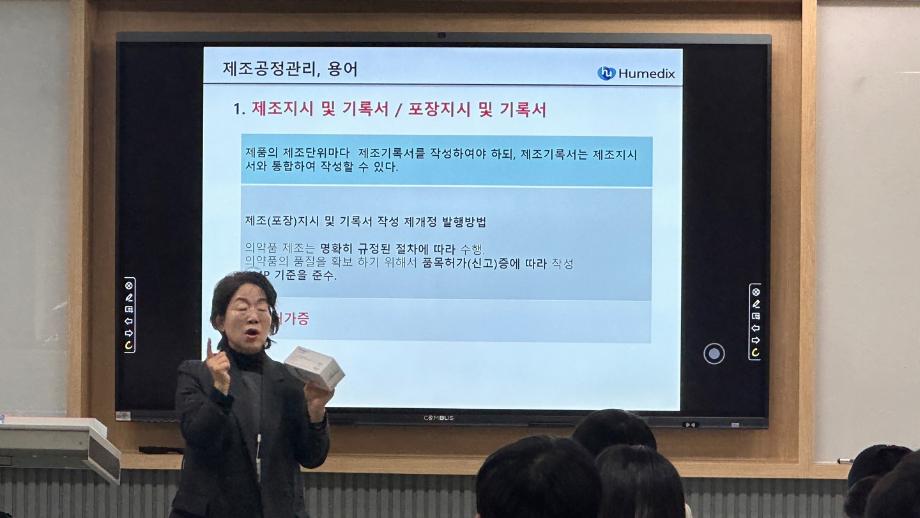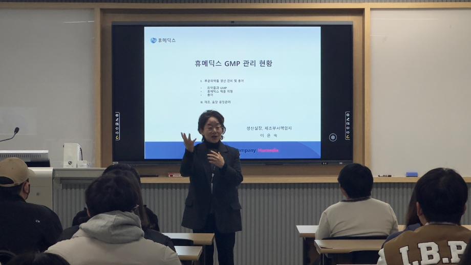 본문 시작 홈으로 학부자료실 학부소개 교육과정 학부공지게시판 학부자료실 홈페이지가이드 학부행사 및 사진게시판 학부행사 및 사진게시판 학생회 소개 학부행사 및 사진게시판 페이스북 트위터 프린트 휴메딕스 이은숙 이사 특강_현직자가 알려주는 GMP&Validation 바이오제약산업학부 3362 2023-12-08 바이오제약산업학부에서는 휴메딕스 생산실장, 제조부서책임자 이은숙 이사님을 모시고 휴메딕스 GMP 관리 현황에 대한 특강을 진행하였다. GMP가 엄격히 관리되고 있는 기업의 현황을 사례로 제약산업에서 필수적인 GMP에 대한 의미있는 교육이 진행되었다. 목록 이전휴메딕스 원상호 부장 특강_현직자가 알려주는 제약품질 관리 다음 2023학년도 전기 학위 수여식 안내 담당부서 : 바이오제약산업학부 담당자 : - 연락처 : 043-649-1729 최종수정일 : 2024-10-26 만족도조사 만족도 조사 이 페이지에서 제공하는 정보에 대하여 만족하시나요? 매우만족 만족 보통 불만족 매우불만족