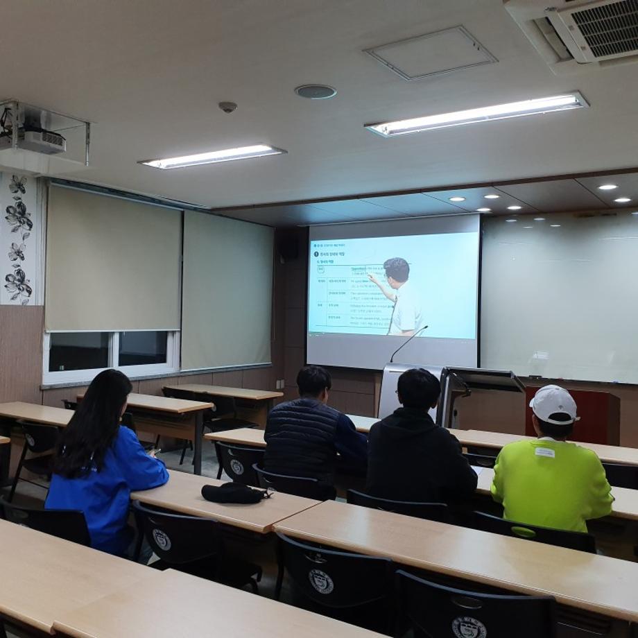 - 4학년 재학생들을 중심으로 만들어진 토익스토리는 토익점수 700점 취득을 목표로 방과 후 시간에 함께 동영상 강의를 시청하고 모의고사를 푸는 등 영어공부 활동을 진행하고 있습니다.