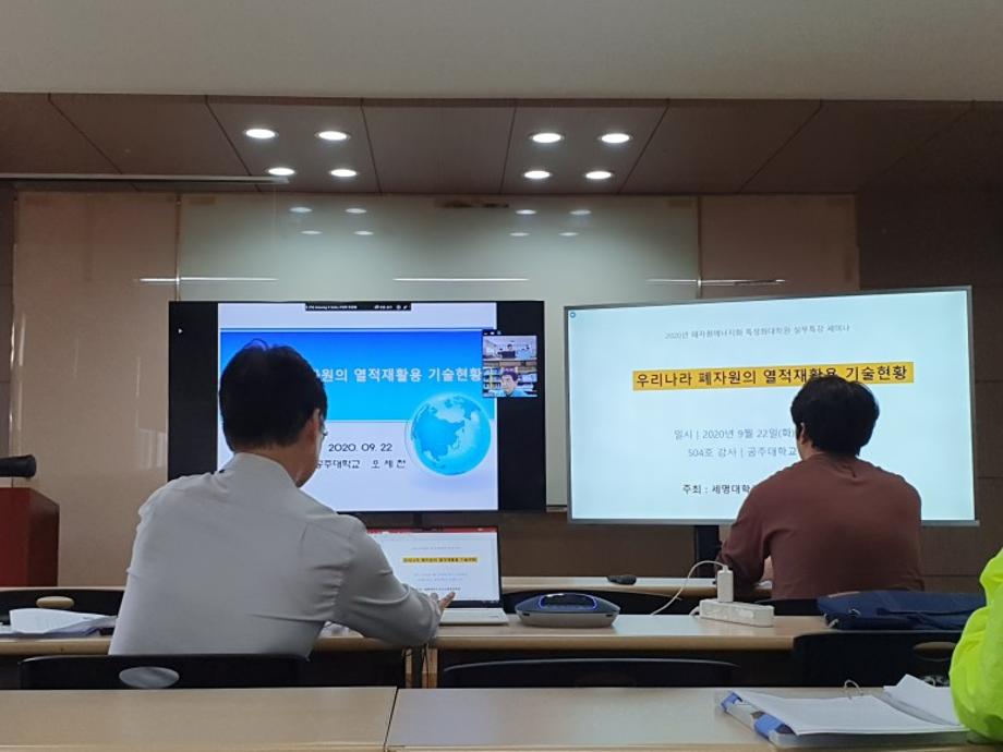 폐자원에너지화 특성화대학원 사업의 일환으로 폐기물에너지 분야의 전문가인 공주대학교 환경공학과 오세천 교수님을 초대하여 우리나라 폐자원의 열적재활용 기술현황란 주제로 ZOOM을 통한 화상세미나를 실시하였습니다.