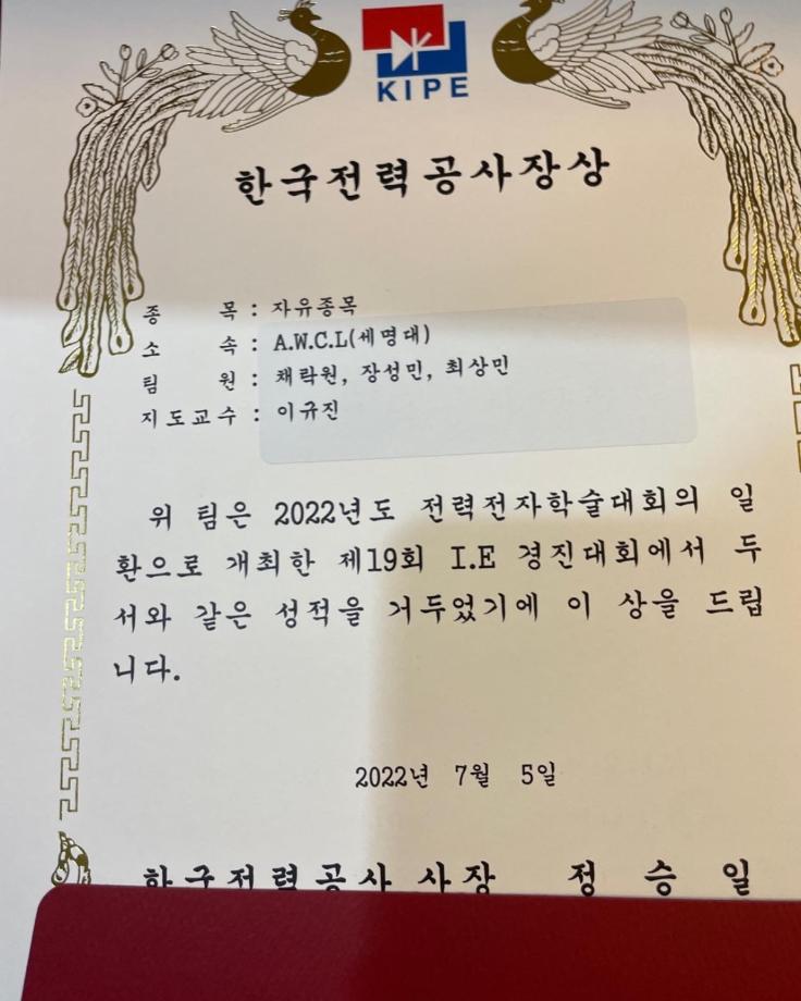 본문 시작 홈으로 커뮤니티 학과소개 교육과정 학과활동 커뮤니티 진로취업 입학상담 홈페이지가이드 포토갤러리 학과공지 포토갤러리 자유게시판 동영상 게시판 포토갤러리 페이스북 트위터 프린트 2022년 제19회 I.E(Intelligent Electronics)경진대회 수상 전자공학과 2718 2022-07-09 전자공학과 차세대무선통신동아리는 7/5일 경주에서 열린 전력전자학술대회에 참가하였습니다. 지정작품으로 ‘태양열과 열전소자를 이용한 에너지순환 스마트팜’과 자유작품으로 ‘가시광 통신을 이용한 실내 휠체어’ 주제로 참가하였습니다. 수상으로는 한국전력공사장상을 했습니다. 이 대회 참가로 전자공학에 대한 보는 눈이 더 넓어졌고 세명대학교의 이름을 알릴 수 있는 귀중한 시간이였습니다. 목록 이전ORCAD 특강 마무리 다음 제천제일고등학교 특강 1일차 (나의 앱 만들기 아두이노 앱) 담당부서 : 전자공학과 담당자 : - 연락처 : 043-649-1683 최종수정일 : 2024-10-26 만족도조사 만족도 조사 이 페이지에서 제공하는 정보에 대하여 만족하시나요? 매우만족 만족 보통 불만족 매우불만족