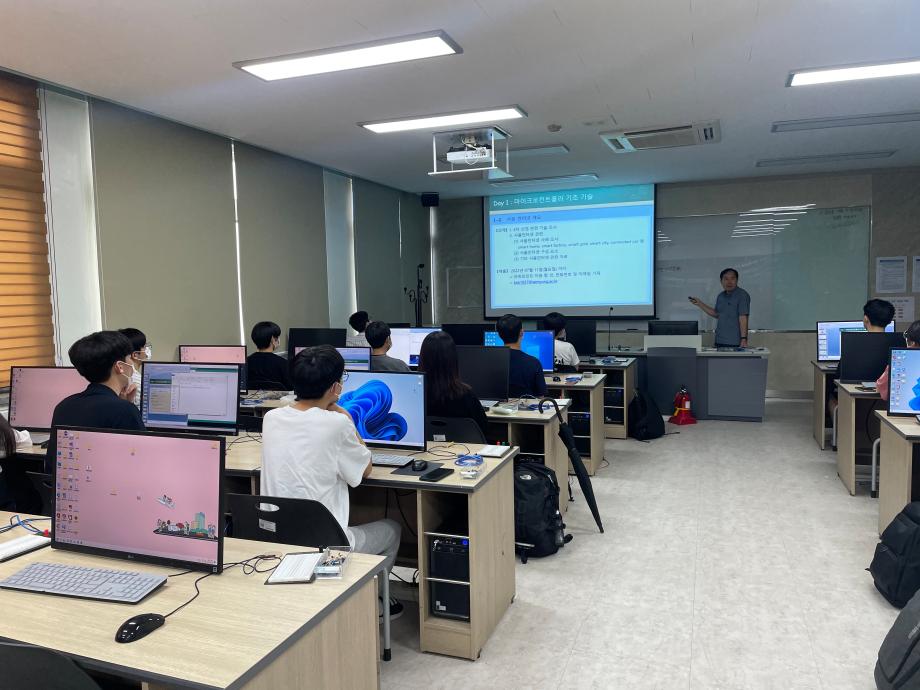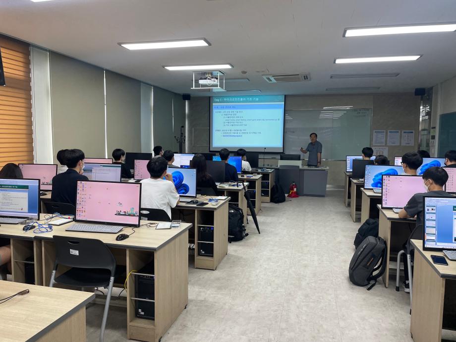 본문 시작 홈으로 커뮤니티 학과소개 교육과정 학과활동 커뮤니티 진로취업 입학상담 홈페이지가이드 포토갤러리 학과공지 포토갤러리 자유게시판 동영상 게시판 포토갤러리 페이스북 트위터 프린트 제천제일고등학교 특강 1일차 (나의 앱 만들기 아두이노 앱) 전자공학과 2912 2022-07-11 제천제일고등학교에서 고등학생들이 세명대학교로 왔습니다! 학생들은 7/7~12일까지 ‘나의 앱 만들기 아두이노 앱’ 을 주제로 특강을 듣습니다. 권오근 교수님 주관으로 M.X 학생들과 차세대 학생들이 멘토가 되어 학생들을 교육합니다. 첫날은 IoT에 관한 이론 및 아두이노 사용법, LED 제어에 대해서 교육을 하였습니다. 목록 이전2022년 제19회 I.E(Intelligent Electronics)경진대회 수상 다음 제천제일고등학교 특강 2일차 (나의 앱 만들기 아두이노 앱) 담당부서 : 전자공학과 담당자 : - 연락처 : 043-649-1683 최종수정일 : 2024-10-26 만족도조사 만족도 조사 이 페이지에서 제공하는 정보에 대하여 만족하시나요? 매우만족 만족 보통 불만족 매우불만족