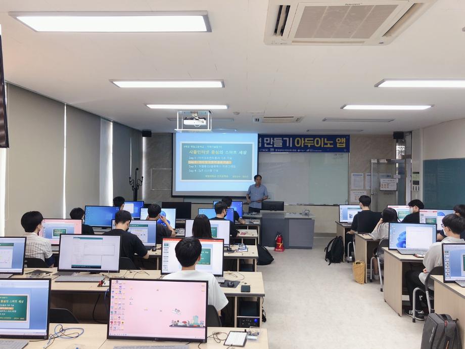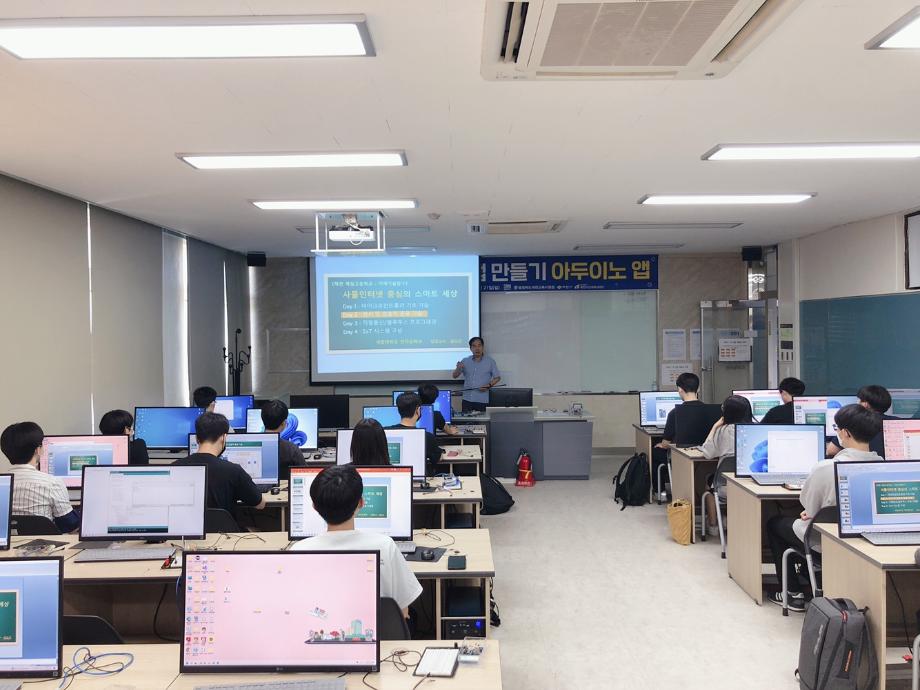 본문 시작 홈으로 커뮤니티 학과소개 교육과정 학과활동 커뮤니티 진로취업 입학상담 홈페이지가이드 포토갤러리 학과공지 포토갤러리 자유게시판 동영상 게시판 포토갤러리 페이스북 트위터 프린트 제천제일고등학교 특강 2일차 (나의 앱 만들기 아두이노 앱) 전자공학과 2898 2022-07-12 7/8일 제일고등학교 학생을 대상으로 ‘나의 앱 만들기 아두이노 앱’ 특강 2일차를 진행했습니다. 학생들은 2일차 특강에서 적외선 센서, 모터, 스피커 사용을 하여 시리얼 통신을 통해 제어하는 것을 배웠습니다. 목록 이전제천제일고등학교 특강 1일차 (나의 앱 만들기 아두이노 앱) 다음 제천제일고등학교 특강 3일차 (나의 앱 만들기 아두이노 앱) 담당부서 : 전자공학과 담당자 : - 연락처 : 043-649-1683 최종수정일 : 2024-10-26 만족도조사 만족도 조사 이 페이지에서 제공하는 정보에 대하여 만족하시나요? 매우만족 만족 보통 불만족 매우불만족