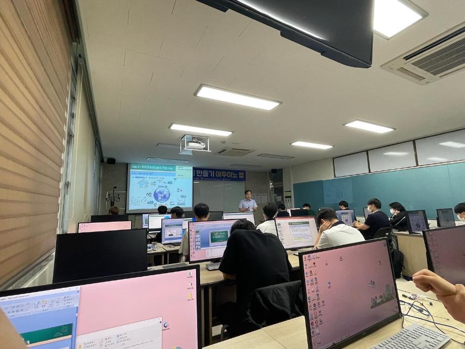 본문 시작 홈으로 커뮤니티 학과소개 교육과정 학과활동 커뮤니티 진로취업 입학상담 홈페이지가이드 포토갤러리 학과공지 포토갤러리 자유게시판 동영상 게시판 포토갤러리 페이스북 트위터 프린트 제천 세명고등학교 특강 1일차(나의 앱 만들기 아두이노 앱) 전자공학과 2948 2022-07-15 7/13일 세명고등학교 학생을 대상으로 ‘나의 앱 만들기 아두이노 앱’ 특강을 진행하였습니다. 1일차에 IoT관련 이론 교육 및 LED 제어와 같은 실습을 진행하였습니다! 목록 이전제천제일고등학교 특강 4일차 (나의 앱 만들기 아두이노 앱) 다음 제천 세명고등학교 특강 2일차(나의 앱 만들기 아두이노 앱) 담당부서 : 전자공학과 담당자 : - 연락처 : 043-649-1683 최종수정일 : 2024-10-26 만족도조사 만족도 조사 이 페이지에서 제공하는 정보에 대하여 만족하시나요? 매우만족 만족 보통 불만족 매우불만족
