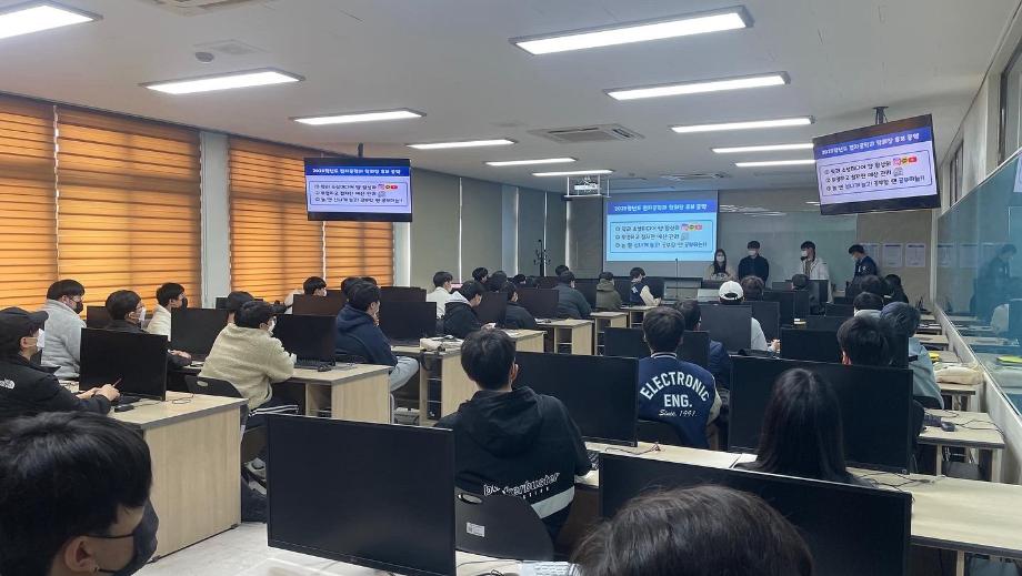 본문 시작 홈으로 커뮤니티 학과소개 교육과정 학과활동 커뮤니티 진로취업 입학상담 홈페이지가이드 포토갤러리 학과공지 포토갤러리 자유게시판 동영상 게시판 포토갤러리 페이스북 트위터 프린트 2023년도 학회장 선거 전자공학과 3475 2022-11-21 세명대학교 전자공학과에서 2023년 학회장 투표를 진행하였습니다. 선거 후보로는 정) 손현아 부) 정민기 학생이 단일후보로 나왔습니다. 공약으로는 1. 학과 소셜미디어 앱 활성화 2. 투명하고 철저한 예산관리 3. 놀 땐 신나게 놀고! 공부할 땐 공부하는!! 이였습니다. 투표 결과 당선이 되었습니다. 축하하고 내년 전자공학과를 잘 부탁드립니다!! 목록 이전2022년도 캡스톤 디자인 졸업작품 발표회 다음 2022년 캡스톤 디자인 졸업작품 발표회 담당부서 : 전자공학과 담당자 : - 연락처 : 043-649-1683 최종수정일 : 2024-10-26 만족도조사 만족도 조사 이 페이지에서 제공하는 정보에 대하여 만족하시나요? 매우만족 만족 보통 불만족 매우불만족