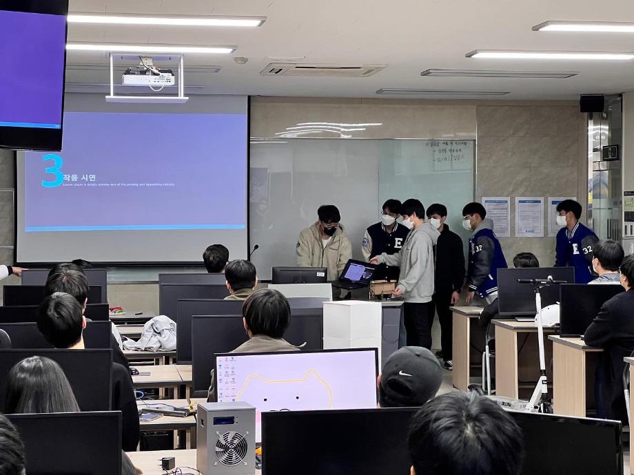 본문 시작 홈으로 커뮤니티 학과소개 교육과정 학과활동 커뮤니티 진로취업 입학상담 홈페이지가이드 포토갤러리 학과공지 포토갤러리 자유게시판 동영상 게시판 포토갤러리 페이스북 트위터 프린트 2022년 캡스톤 디자인 졸업작품 발표회 전자공학과 3464 2022-11-21 2022년도 캡스톤 디자인 졸업작품 발표회를 11/16일에 진행했습니다. 총 6개의 팀이 참가하여 각 팀별로 만든 작품을 발표하는 시간을 가졌습니다. 이번 캡스톤 디자인 졸업작품 발표회는 특별하게 참가팀 모두 최초로 통과하여 졸업 요건을 얻는 성적을 거두었습니다. 참가팀 모두 수고하셨습니다! 목록 이전2023년도 학회장 선거 다음 국제학술대회 ICCAS와 KAIS 한국산학기술학회 추계학술대회 참가 담당부서 : 전자공학과 담당자 : - 연락처 : 043-649-1683 최종수정일 : 2024-10-26 만족도조사 만족도 조사 이 페이지에서 제공하는 정보에 대하여 만족하시나요? 매우만족 만족 보통 불만족 매우불만족
