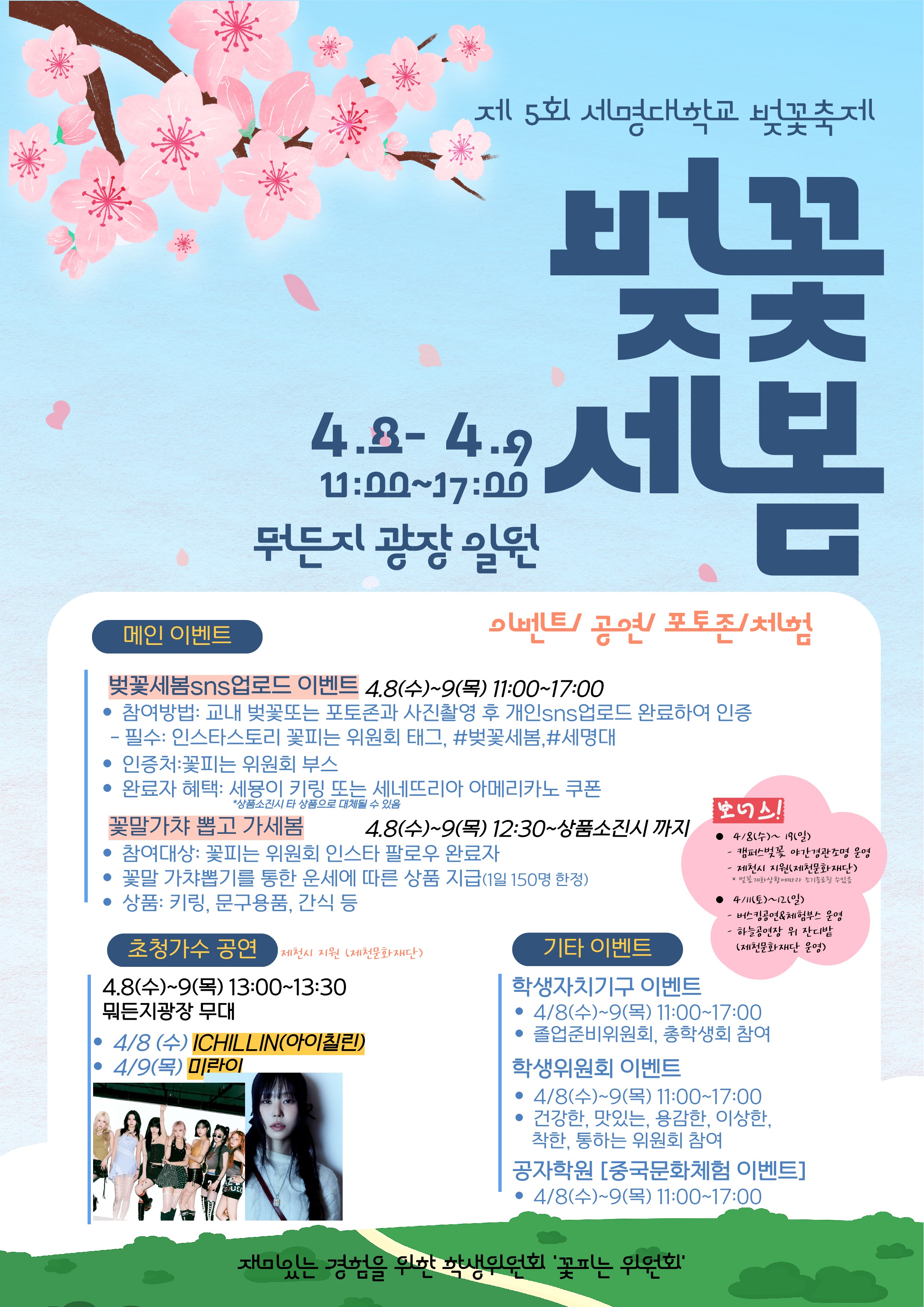 제5회 세명대학교 벚꽃축제 '벚꽃 세봄' 안내
