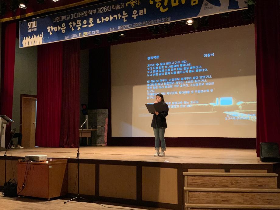 본문 시작 홈으로 학부소식 학부소개 교육과정 학부소식 커뮤니티 홈페이지가이드 포토갤러리 공지사항 학사일정 학부행사 미문뉴스 미문한컷 포토갤러리 포토갤러리 페이스북 트위터 프린트 미디어문화학부 학술제 '어울림' 미디어문화학부 13001 2019-11-28 11월28일 미디어문화학부 학술제 어울림을 진행하였습니다. 목록 이전미디어문화학부 문화산업기관 견학 및 답사 다음 미디어문화 큐브 담당부서 : 미디어문화학부 담당자 : - 연락처 : 043-649-1760 최종수정일 : 2024-10-26 만족도조사 만족도 조사 이 페이지에서 제공하는 정보에 대하여 만족하시나요? 매우만족 만족 보통 불만족 매우불만족