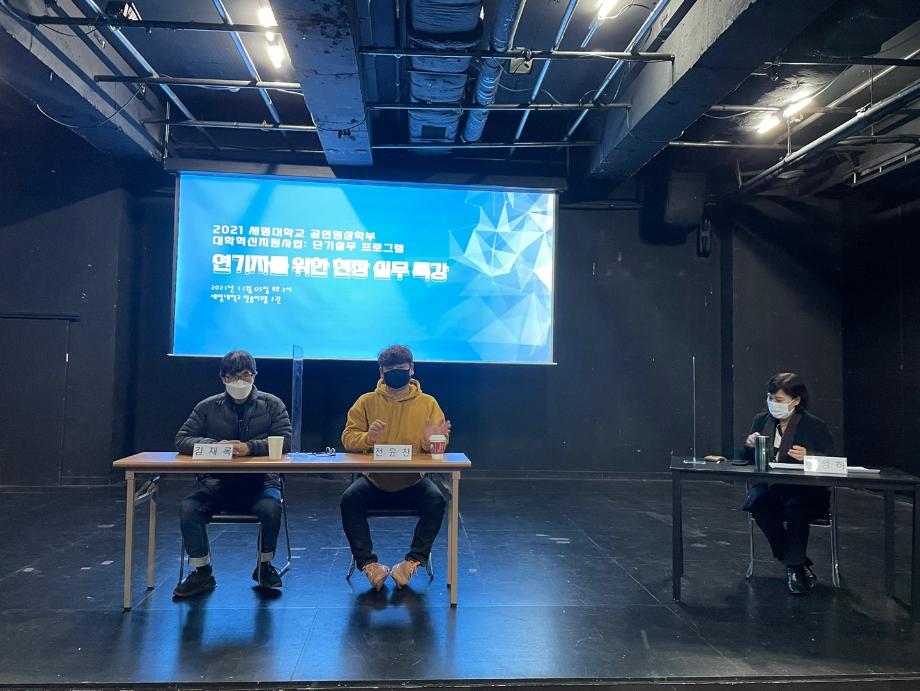 본문 시작 홈으로 커뮤니티 학과소개 교수소개 학과과정 커뮤니티 작품DB 서울대학로 민송아트홀 홈페이지가이드 사진자료실 학과공지 전공자료실 사진자료실 사진자료실 페이스북 트위터 프린트 2021 연기자를 위한 현장 실무 특강 3회 공연영상학과 2541 2021-12-13 <연기자들을 위한 현장 실무 특강> 일시 : 12월13일 장소 : 민송아트홀 강사 : 김재록 전윤찬 배우 김재록 / PD 전윤찬 분들의 알차고 유익했던 특강은 많은 학생들이 현장 실무에 대하여 폭 넓게 배울 수 있는 시간이었습니다. 앞으로 더욱 성장할 수 있는 세명대학교 연기예술학과가 되겠습니다! 강연을 도와주신분들께 진심으로 감사의 인사를 올립니다. 목록 이전2021 연기자를 위한 현장 실무 특강 2회 다음 2022년도 1학기 극장동아리 - 짜스트 활동! 담당부서 : 공연영상학과 담당자 : - 연락처 : 043-649-1429 최종수정일 : 2024-10-26 만족도조사 만족도 조사 이 페이지에서 제공하는 정보에 대하여 만족하시나요? 매우만족 만족 보통 불만족 매우불만족