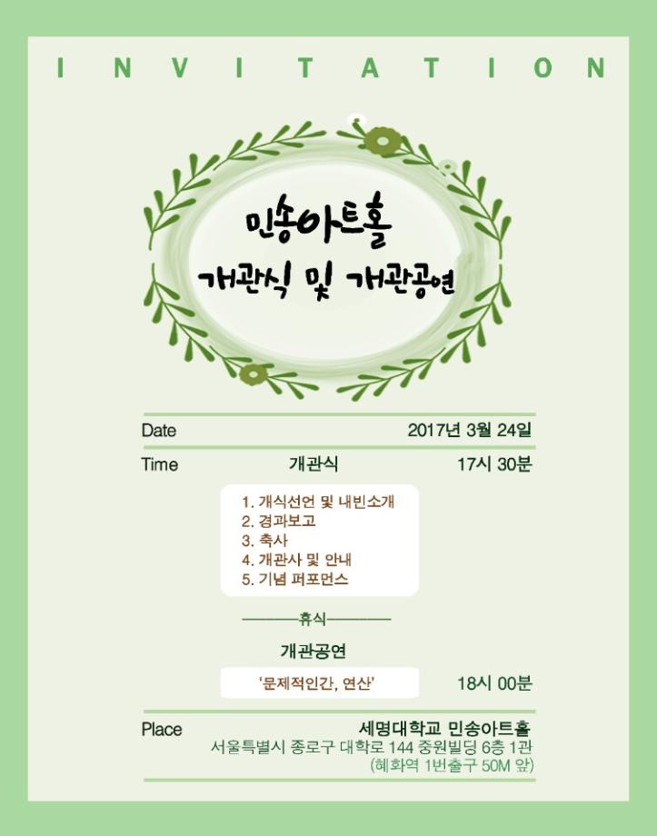 서울시 종로구 대학로에 '민송아트홀'을 개관하였습니다!