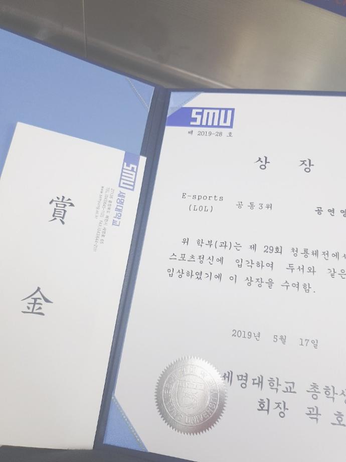 15학번 채윤석 외 4명의 학생이 E-SPORT (LOL부문)에서 공동3위의 기록을 세우며