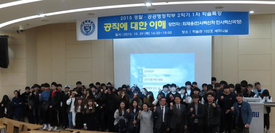 본문 시작 홈으로 커뮤니티 학부소개 교수소개 학부과정 커뮤니티 홈페이지가이드 포토갤러리 학부공지 채용정보 학부일정 포토갤러리 전공자료실 학생회 동아리 포토갤러리 페이스북 트위터 프린트 2015학년도 2학기 1차 학부학술특강 [공직에 대한 이해] 전체관리자 21967 2015-10-30 2015년 10월 29일 2015학년도 2학기 1차 학부학술특강을 "공직에 대한 이해"라는 주제로 인사혁신처 인사혁신국장 최재용님께서 강연하여주셨습니다. 목록 이전2015학년도 신입생 봉사활동 다음 2015학년도 2학기 안보전시관 교외교육 담당부서 : 경찰공공행정학부 담당자 : - 연락처 : 043-649-1457 최종수정일 : 2024-10-26 만족도조사 만족도 조사 이 페이지에서 제공하는 정보에 대하여 만족하시나요? 매우만족 만족 보통 불만족 매우불만족