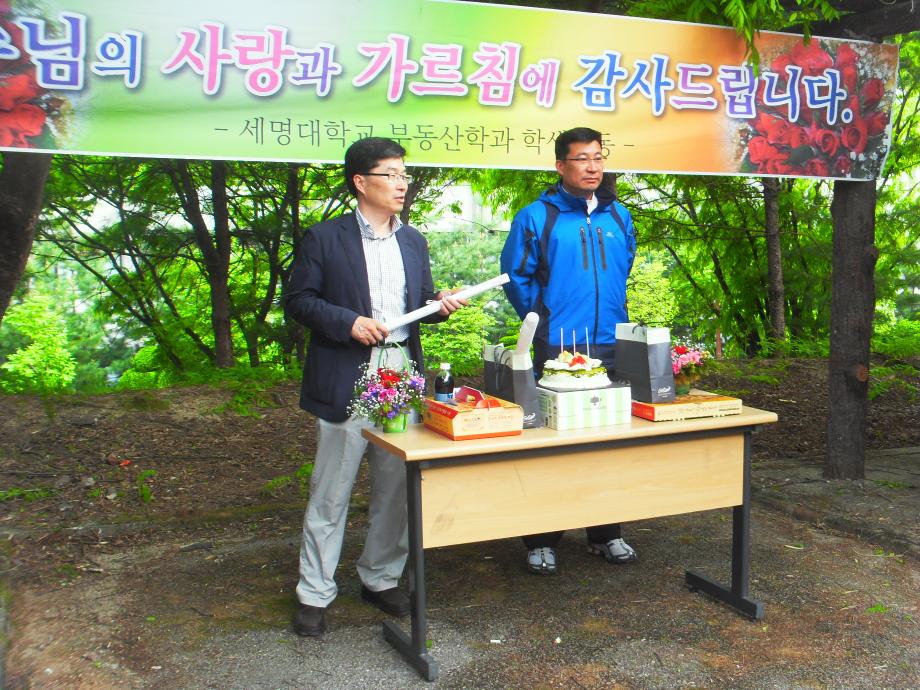 본문 시작 홈으로 학과 소식 학과소개 취업 및 진로 언론 및 보도 학과 소식 대학원 홈페이지가이드 행사사진게시판 행사사진게시판 공지사항 일반자료실 강의자료실 부동산학보 동아리 행사사진게시판 페이스북 트위터 프린트 2011년 스승의날 행사 개최 전체관리자 6832 2011-05-26 2011년 5월 19일(목) 저녁 5시부터 "스승의 날 행사"와 "책임지도교수제"를 사회과학관 야외공원에서 개최하였다. 이날 학과 교수님(김행종, 권기욱 교수님과 장용삼 교수님 휴직중)과 조교 선생님, 재학생 전원이 참석한 가운데, "스승의 은혜" 와 정성스레 준비한 꽃다발, 교수님께 드리는 글, 선물 증정식, 케익자르기, 감사의 축배(세부주), 치킨, 피자 등 뜻있고 의미있는 감사의 시간을 가졌다. ♥ 교수님!!! 감사합니다.!!! 목록 이전2011년도 제21회 청룡체전 참가 다음 스승의 날 행사 개최 담당부서 : 부동산지적학과 담당자 : - 연락처 : 043-649-1784 최종수정일 : 2024-10-26 만족도조사 만족도 조사 이 페이지에서 제공하는 정보에 대하여 만족하시나요? 매우만족 만족 보통 불만족 매우불만족