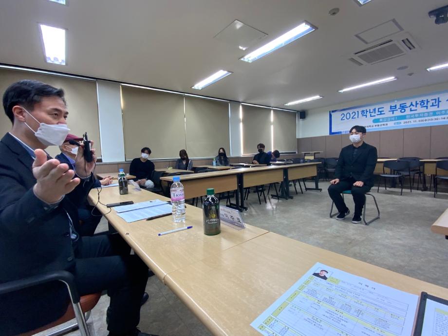 2021년 11월 3일 세명대학교 사회과학관 325호에서 제 1회 심층모의면접을 실시하였습니다. 학생들을 중심으로 취업준비에 필요한 모의면접과 취업 특강을 진행하였습니다. 면접지원자는 4학년 성민 학생과 2학년 유슬기 학생이 지원했습니다. 작성한 이력서와 자기소개서를 바탕으로 세분의 심사위원분들께서 면접을 진행하셨습니다.