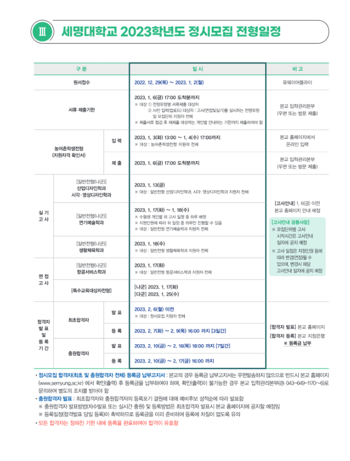 세명대학교 입학홈페이지 http://www.semyung.ac.kr/ipsi.do