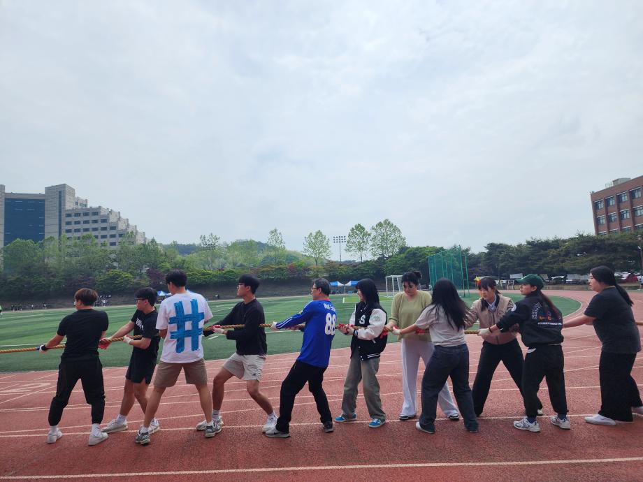 5.17일 부터 19일까지 진행된 청룡체전이 무사히 마쳤습니다. 학생들의 적극적인 참여로 발야구, 축구, 줄다리기,계주, 달리기에 참여하여 줄다리기 1등 , 계주 2등을 수상하였습니다. 참여해주신 교수님과 학생 여러분 너무 감사하고 수고하셨습니다.