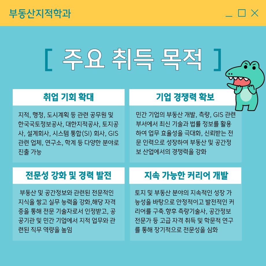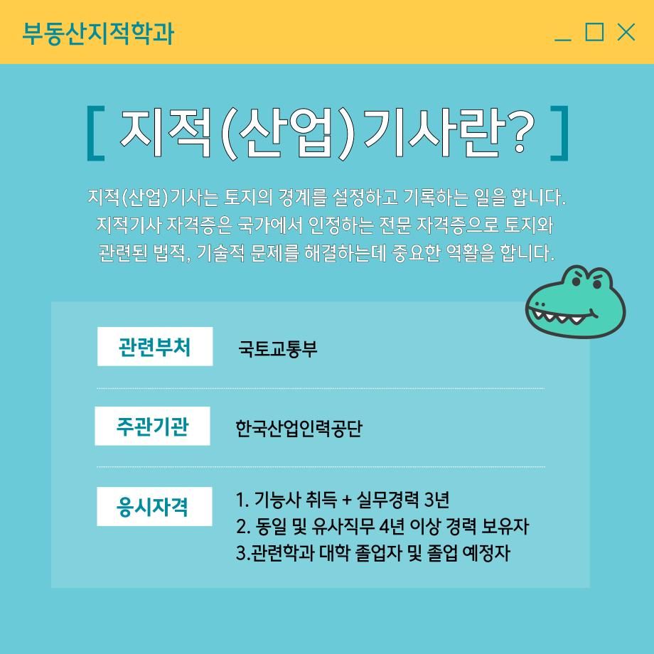 본문 시작 홈으로 학과 소식 학과소개 취업 및 진로 언론 및 보도 학과 소식 대학원 홈페이지가이드 행사사진게시판 행사사진게시판 공지사항 일반자료실 강의자료실 부동산학보 동아리 행사사진게시판 페이스북 트위터 프린트 지적기사 소개 카드 부동산지적학과 2451 2024-11-26 지적기사 소개 카드입니다. 지적기사에 관심있는 학생들은 참고하여 주세요. 목록 이전공인중개사 소개카드 이전청소년 빅 콘서트_ 학과 전공체험 담당부서 : 부동산지적학과 담당자 : - 연락처 : 043-649-1784 최종수정일 : 2024-10-26 만족도조사 만족도 조사 이 페이지에서 제공하는 정보에 대하여 만족하시나요? 매우만족 만족 보통 불만족 매우불만족