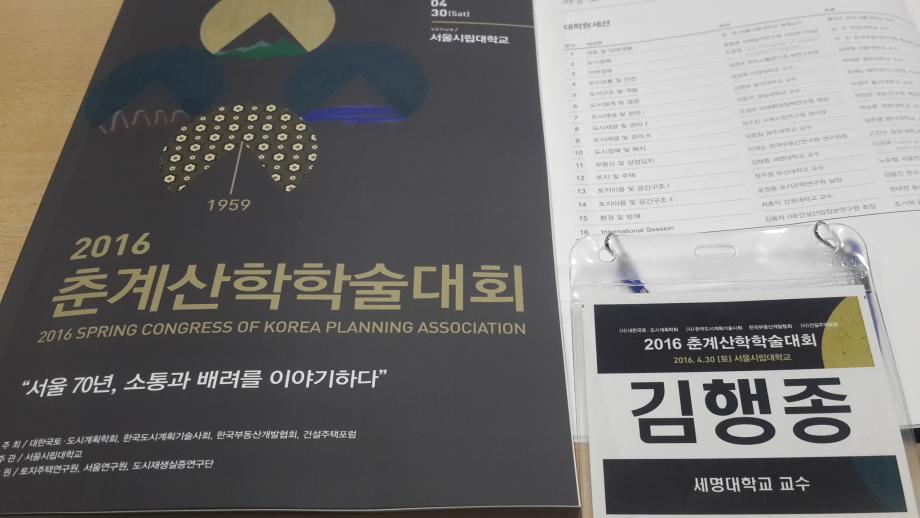 본문 시작 홈으로 학과 소식 학과소개 취업 및 진로 언론 및 보도 학과 소식 대학원 홈페이지가이드 행사사진게시판 행사사진게시판 공지사항 일반자료실 강의자료실 부동산학보 동아리 행사사진게시판 페이스북 트위터 프린트 2016 대한국토도시계획학회 춘계산학학술대회 참가 전체관리자 9383 2016-05-01 2016 대한국토도시계획학회 춘계산학학술대회 참가 일시: 2016.4.30(토) 08:30-19:30 장소: 서울시립대학교 주최: 대한국토도시계획학회, 한국도시계획기술사회, 한국부동산개발협회, 건설주택포럼 주요내용: 정책세미나 주제발표 10편, 대학원세션 16분과 주제발표 80편, 전문가세션 12분과 주제발표 58편 등 148편 주제발표 참가자: 세명대학교 김행종 교수님 토지 및 주택분과 좌장 참가 목록 다음 김행종 교수님 2016학년도 취업특강실시 다음 2016 졸업생 취업특강 담당부서 : 부동산지적학과 담당자 : - 연락처 : 043-649-1784 최종수정일 : 2024-10-26 만족도조사 만족도 조사 이 페이지에서 제공하는 정보에 대하여 만족하시나요? 매우만족 만족 보통 불만족 매우불만족