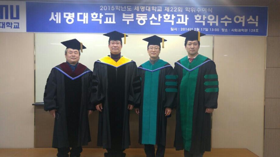 본문 시작 홈으로 학과 소식 학과소개 취업 및 진로 언론 및 보도 학과 소식 대학원 홈페이지가이드 행사사진게시판 행사사진게시판 공지사항 일반자료실 강의자료실 부동산학보 동아리 행사사진게시판 페이스북 트위터 프린트 2016 부동산학과 학위수여식 전체관리자 8827 2016-02-18 2016 부동산학과 학위수여식 일시 : 2016.02.17 수 장소 : 사회과학관 128호 13 : 00 세명대 부동산학과 제7회 학위수여식을 마쳤습니다. 총32명의 학생이 졸업을 하였으며, 부동산관련 직종 및 공간정보산업분야, 대학원 진학 등 72%의 취업을 하였습니다. 졸업생 여러분 모두 축하드립니다. 앞으로의 건승을 기원하겠습니다. 목록 다음 일본 도시재생 선진사례 벤치마킹 프로그램 참가 이전축!!! 김행종 교수님 국기원장 표창장 수상 담당부서 : 부동산지적학과 담당자 : - 연락처 : 043-649-1784 최종수정일 : 2024-10-26 만족도조사 만족도 조사 이 페이지에서 제공하는 정보에 대하여 만족하시나요? 매우만족 만족 보통 불만족 매우불만족