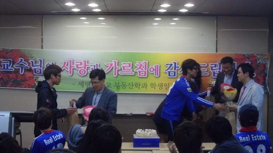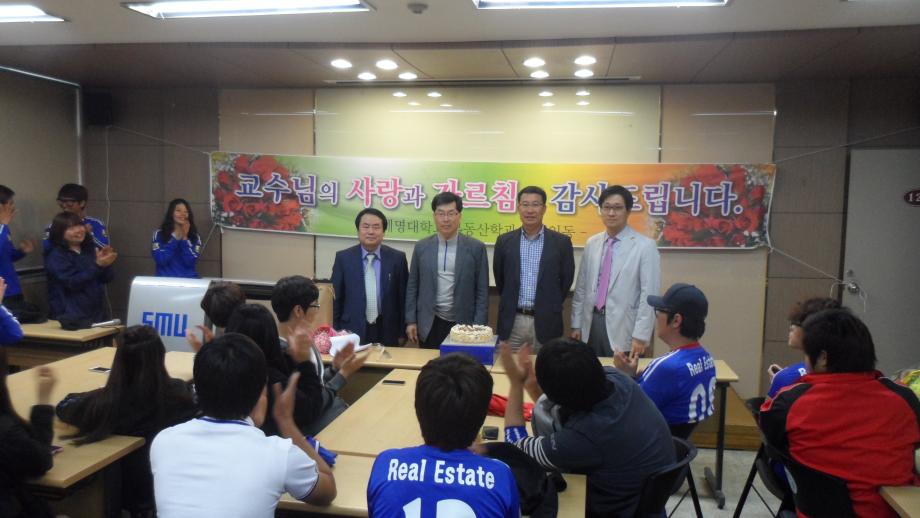 본문 시작 홈으로 학과 소식 학과소개 취업 및 진로 언론 및 보도 학과 소식 대학원 홈페이지가이드 행사사진게시판 행사사진게시판 공지사항 일반자료실 강의자료실 부동산학보 동아리 행사사진게시판 페이스북 트위터 프린트 부동산학과 스승의날 행사 전체관리자 7484 2012-05-21 2012년 5월 17일(목) 저녁4시부터 "스승의 날 행사"를 사회과학관 122호,123호에서 개최하였다. 이날 학과 교수님(김행종, 권기욱, 김상진, 백민석 교수님)과 조교 선생님, 재학생 전원이 참석한 가운데, "스승의 은혜" 와 정성스레 준비한 꽃다발, 교수님께 드리는 글, 선물 증정식, 케익자르기, 감사의 축배(세부주), 치킨, 피자 등 뜻있고 의미있는 감사의 시간을 가졌다. ♥ 교수님!!! 사랑합니다.!!! 목록 이전지역개발은 이렇게!!! 이전우리사회의 문제? 담당부서 : 부동산지적학과 담당자 : - 연락처 : 043-649-1784 최종수정일 : 2024-10-26 만족도조사 만족도 조사 이 페이지에서 제공하는 정보에 대하여 만족하시나요? 매우만족 만족 보통 불만족 매우불만족