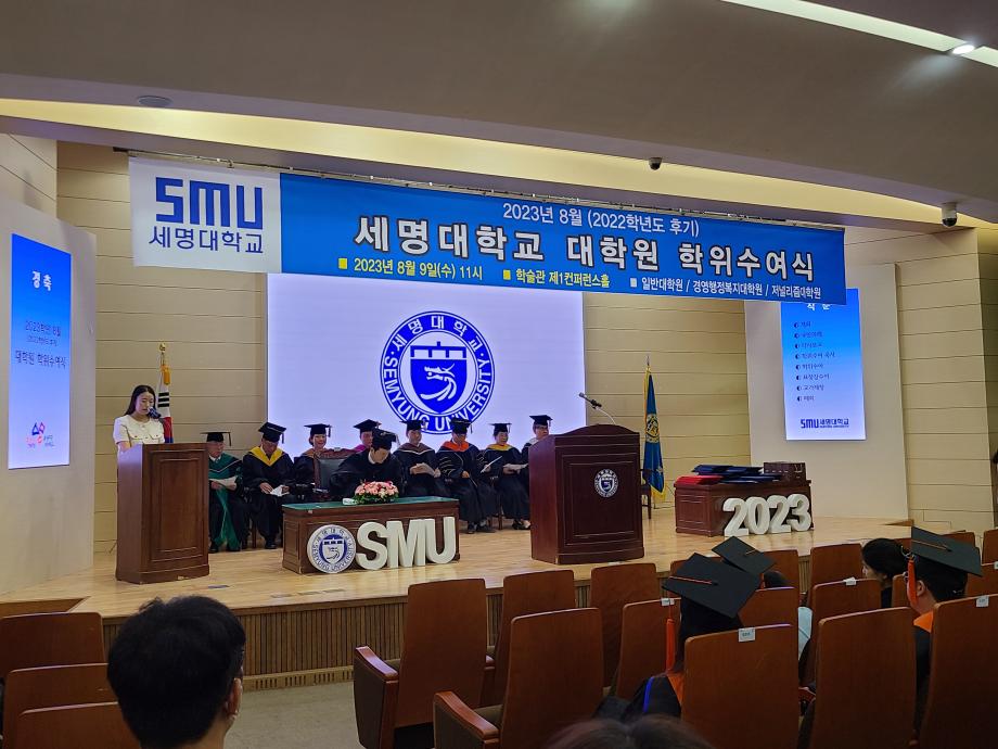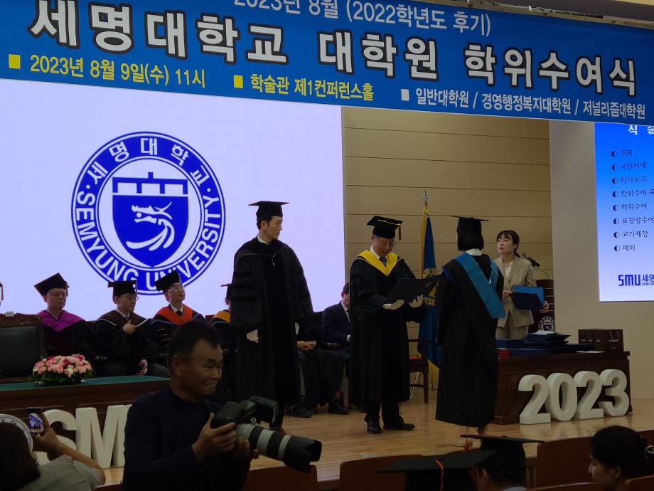 본문 시작 홈으로 커뮤니티 학과소개 교수소개 교육과정 현장실습 및 취업정보 커뮤니티 홈페이지가이드 학생 소통 광장 학과공지 학사일정 학생회 동아리 학생 소통 광장 포토갤러리 전공자료실 서식자료실 학생 소통 광장 페이스북 트위터 프린트 세명대학교 사회복지학과(대학원) 학위수여식 사회복지학과 3805 2023-08-10 2023.08.09(수) 세명대학교 사회복지학과 대학원 학위수여식을 개최하였습니다. 졸업을 축하드립니다. 목록 이전'두근 두근 세명대 사회복지학과 어떻게 가는 거야?" 다음 사회복지학과 2022년도 후기 학위수여식 담당부서 : 사회복지학과 담당자 : - 연락처 : 043-649-1799 최종수정일 : 2024-10-26 만족도조사 만족도 조사 이 페이지에서 제공하는 정보에 대하여 만족하시나요? 매우만족 만족 보통 불만족 매우불만족