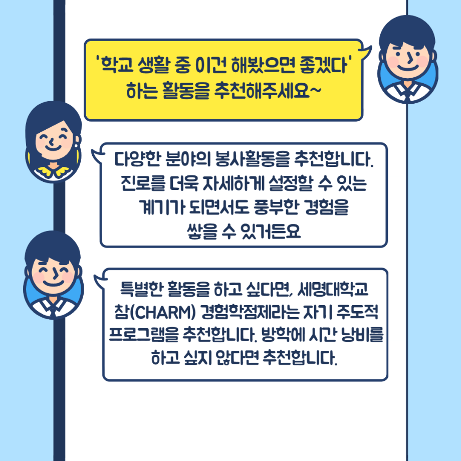 본문 시작 홈으로 커뮤니티 학과소개 교수소개 교육과정 현장실습 및 취업정보 커뮤니티 홈페이지가이드 학생 소통 광장 학과공지 학사일정 학생회 동아리 학생 소통 광장 포토갤러리 전공자료실 서식자료실 학생 소통 광장 페이스북 트위터 프린트 사복과 선배님께 여쭤봐(2,3학년) 사회복지학과 3058 2022-02-03 사복과 선배님께 여쭤봐 2,3학년편입니다! 목록 이전봉사활동 신청방법 다음 사복과 선배님께 여쭤봐(1학년) 담당부서 : 사회복지학과 담당자 : - 연락처 : 043-649-1799 최종수정일 : 2024-10-26 만족도조사 만족도 조사 이 페이지에서 제공하는 정보에 대하여 만족하시나요? 매우만족 만족 보통 불만족 매우불만족