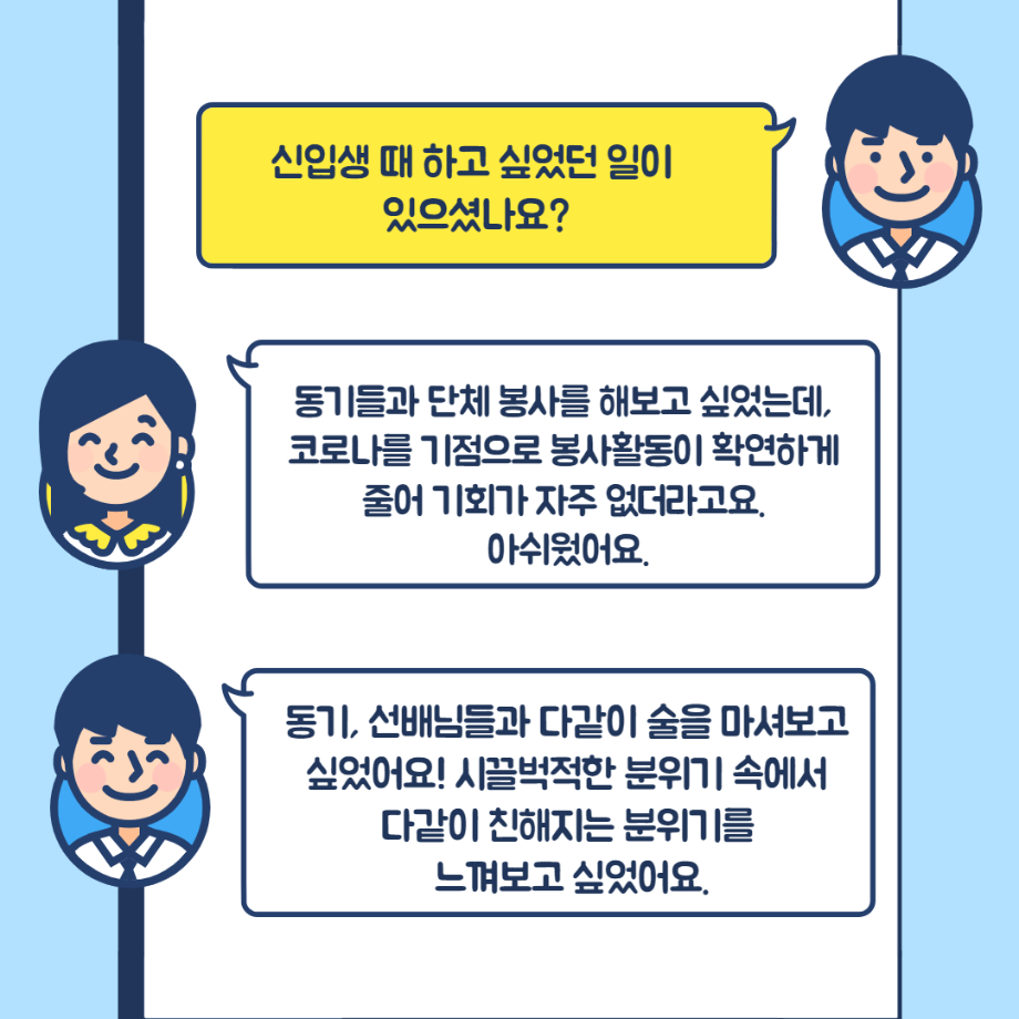 본문 시작 홈으로 커뮤니티 학과소개 교수소개 교육과정 현장실습 및 취업정보 커뮤니티 홈페이지가이드 학생 소통 광장 학과공지 학사일정 학생회 동아리 학생 소통 광장 포토갤러리 전공자료실 서식자료실 학생 소통 광장 페이스북 트위터 프린트 사복과 선배님께 여쭤봐(1학년) 사회복지학과 3184 2022-02-09 사회복지학과에 궁금한 점을 물어보는 사복과 선배님께 여쭤봐 - 1학년편(마지막)입니다! 목록 이전사복과 선배님께 여쭤봐(2,3학년) 다음 사회복지학과라면 필수 동아리.ZIP 담당부서 : 사회복지학과 담당자 : - 연락처 : 043-649-1799 최종수정일 : 2024-10-26 만족도조사 만족도 조사 이 페이지에서 제공하는 정보에 대하여 만족하시나요? 매우만족 만족 보통 불만족 매우불만족